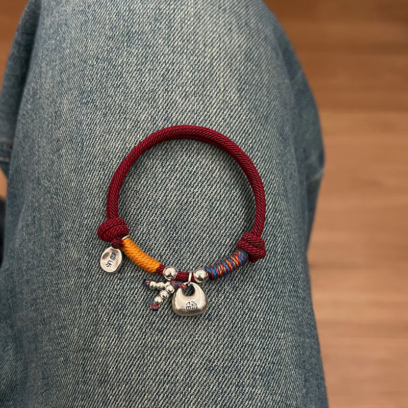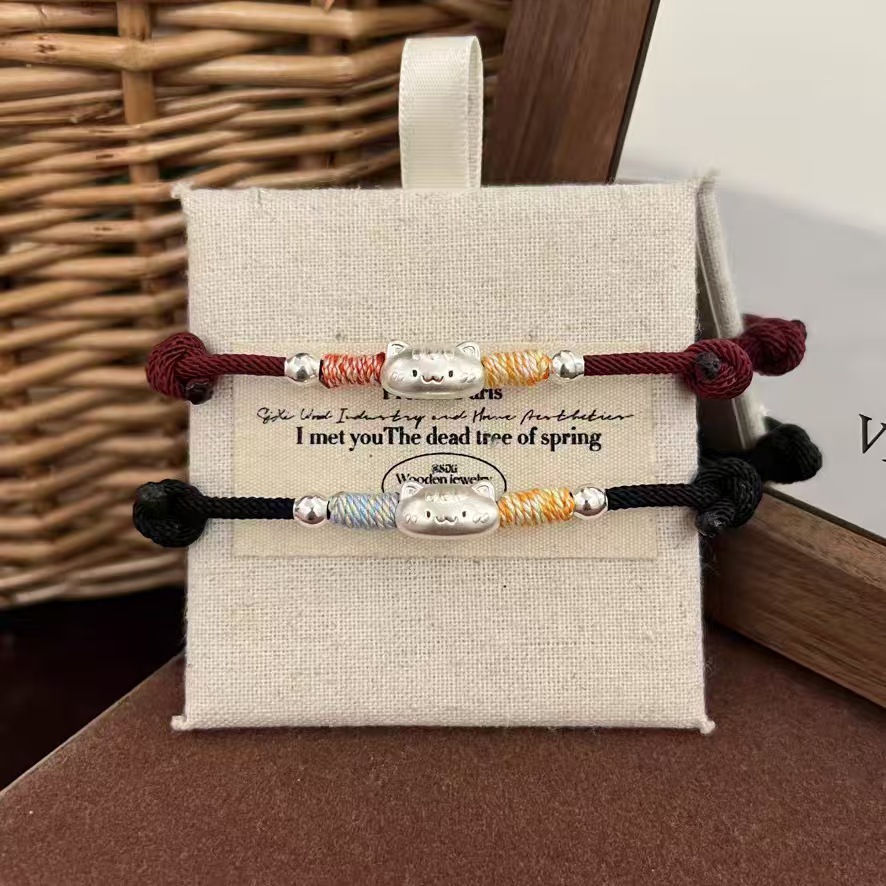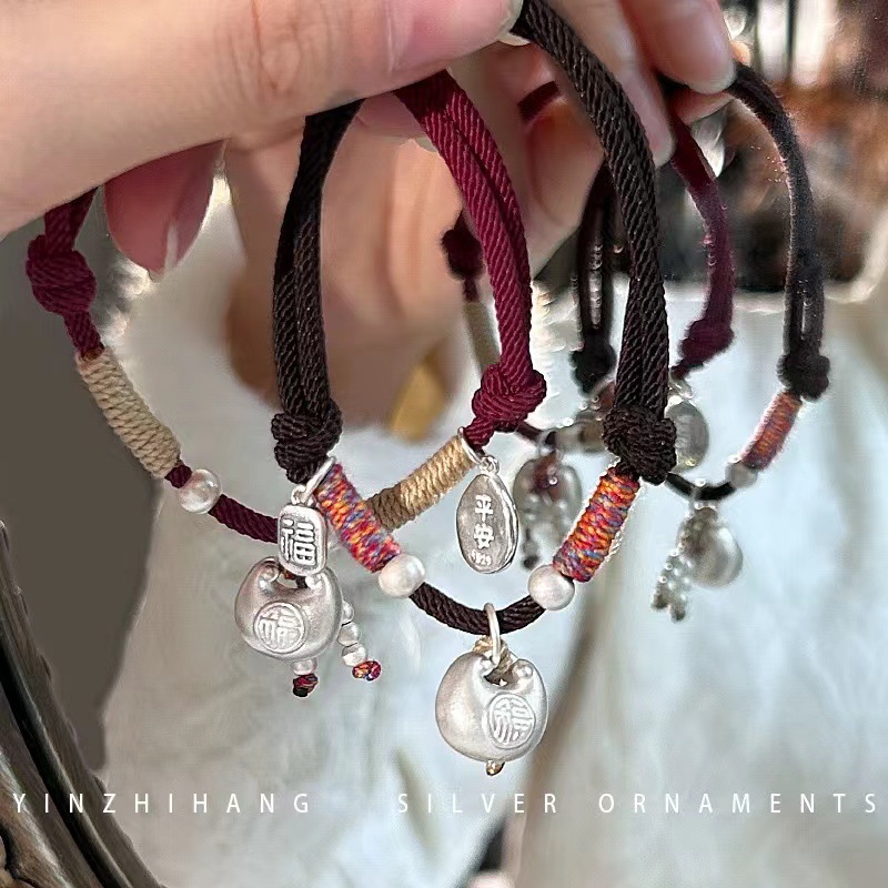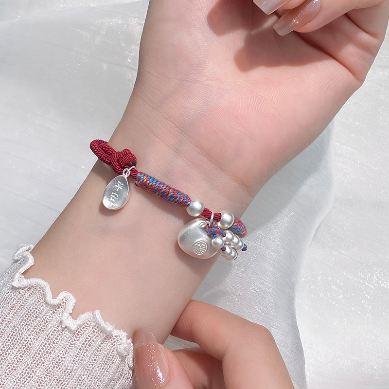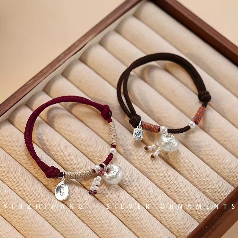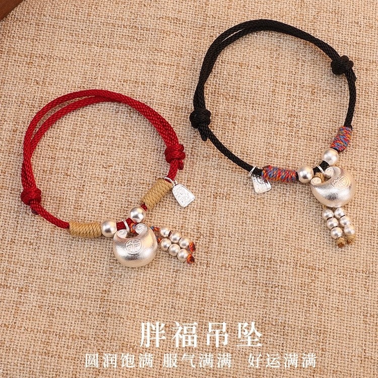銀坤坤実心平安小太った福袋赤縄ブレスレット編みひもカップル男女プレゼントペア