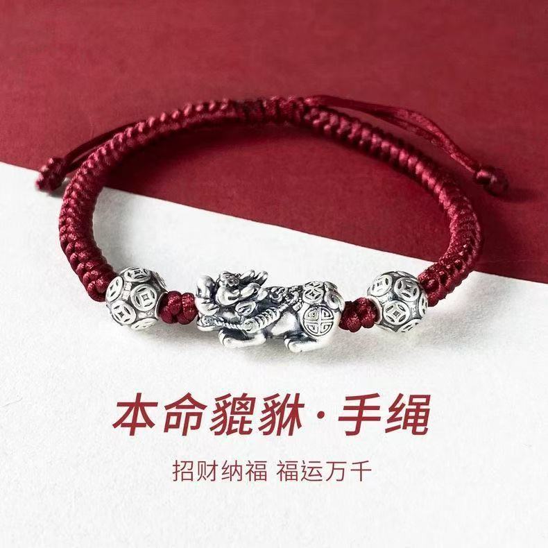 銀坤坤実心平安小太った福袋龍年紅縄ブレスレットカップル男女プレゼント