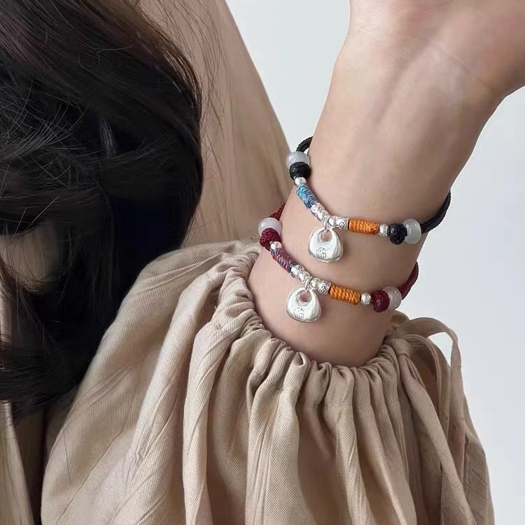 シルバーブレスレット、純銀、安全ロック、小太福、新中国風のカップルブレスレット、ガールフレンドへのギフト