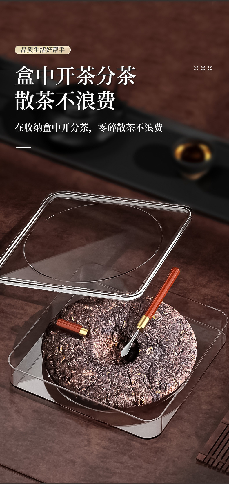 プーアル茶餅箱収納箱密封透明防湿四角い箱茶葉缶中国式家庭用茶葉箱展示棚