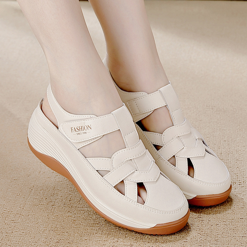 跨境新款坡跟凉鞋女包头镂空透气女外贸厚底外穿魔术贴女洞洞鞋批