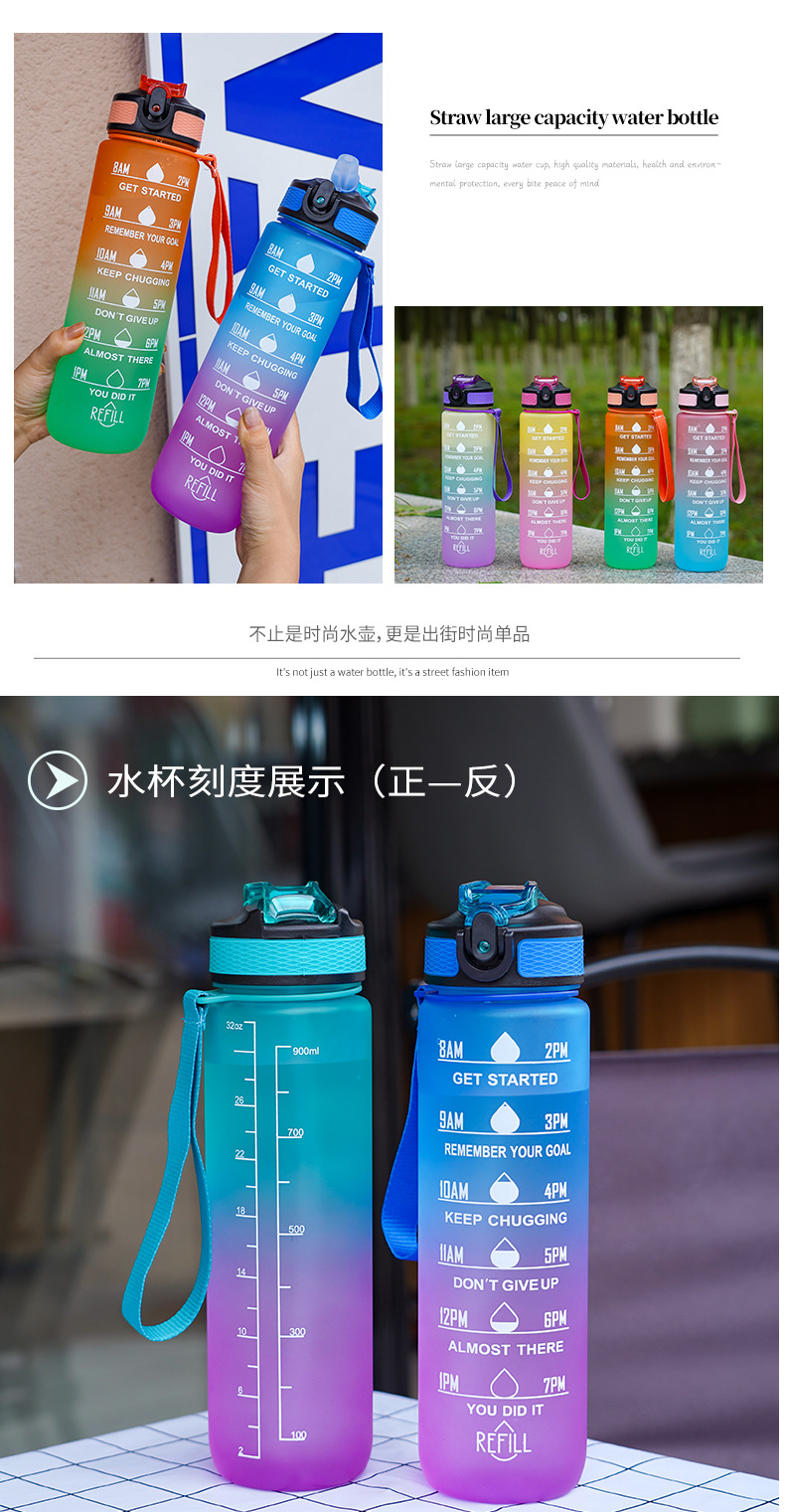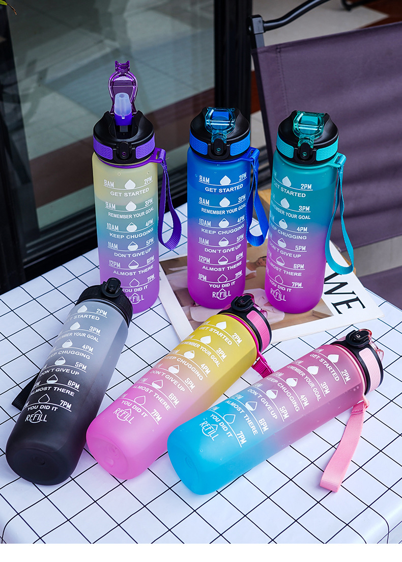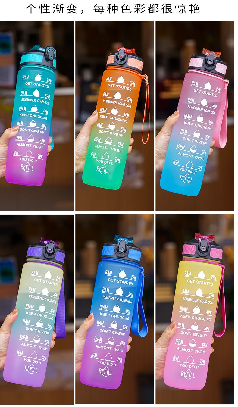大容量スポーツカップ男女学生屋外水筒高颜値フィットネス夏グラデーションフロストプラスチックカップ