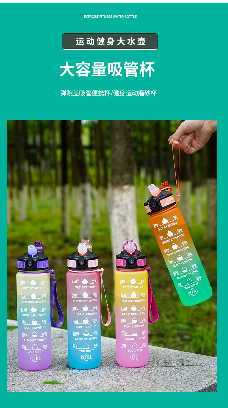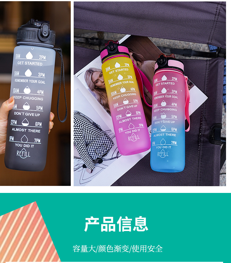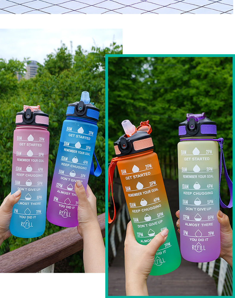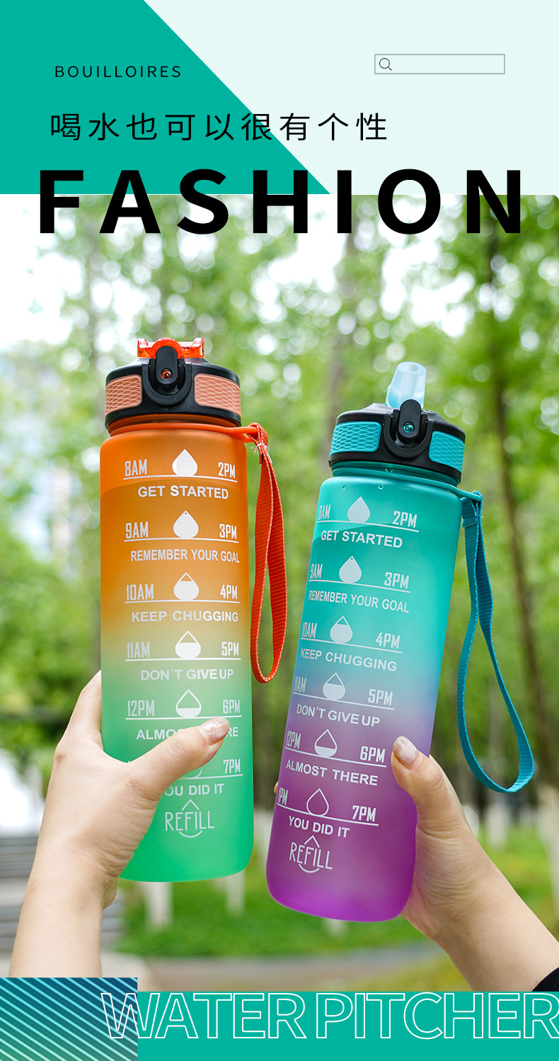 大容量スポーツカップ男女学生屋外水筒高颜値フィットネス夏グラデーションフロストプラスチックカップ