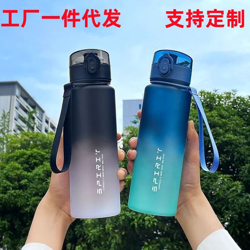 大容量運動フロストグラデーションコップ男女学生プラスチック水筒バウンスカバー屋外フィットネスクロスボーダー熱売