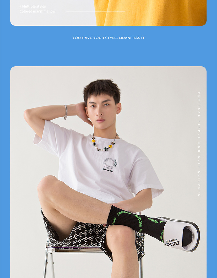 2025新型スリッパ男夏室内の厚い底滑り止め浴室の風呂は糞感を踏んでいます。カップルはスリッパを履いています。