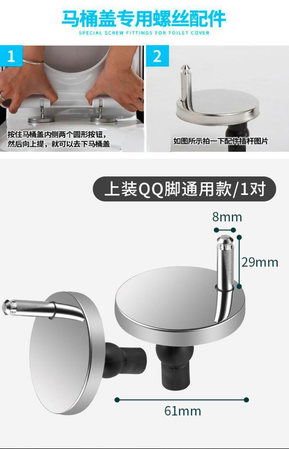 马桶盖配件固定螺丝通用QQ脚配件膨胀盖子螺栓坐便器快装