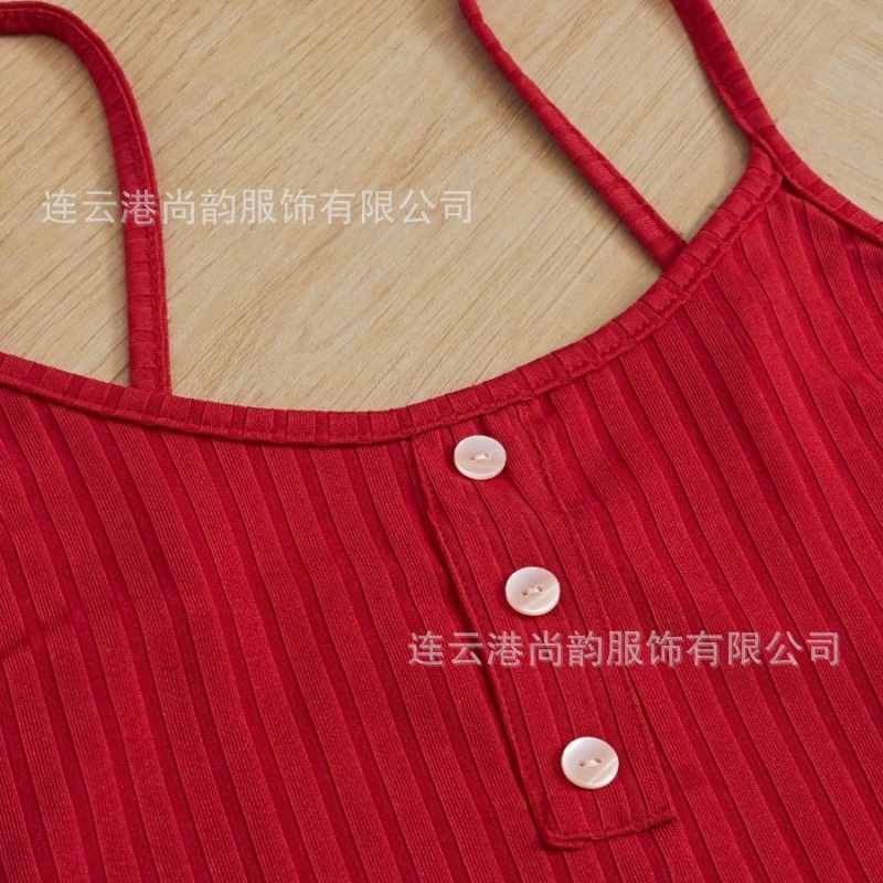 外贸欧美夏季套装针织坑条爱心印花设计感甜美吊带短裤纯欲睡衣