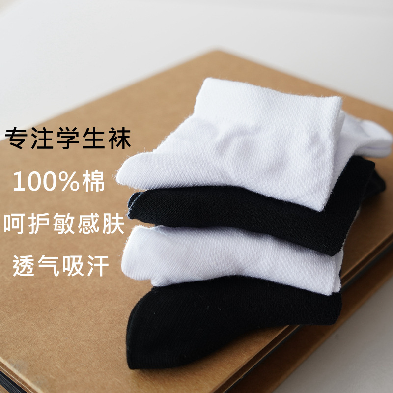 夏の子供の白い学生の靴下の純綿の靴下のネットの目の薄い金の男女の子供の純白の靴下の中で靴下の卸売りをします。