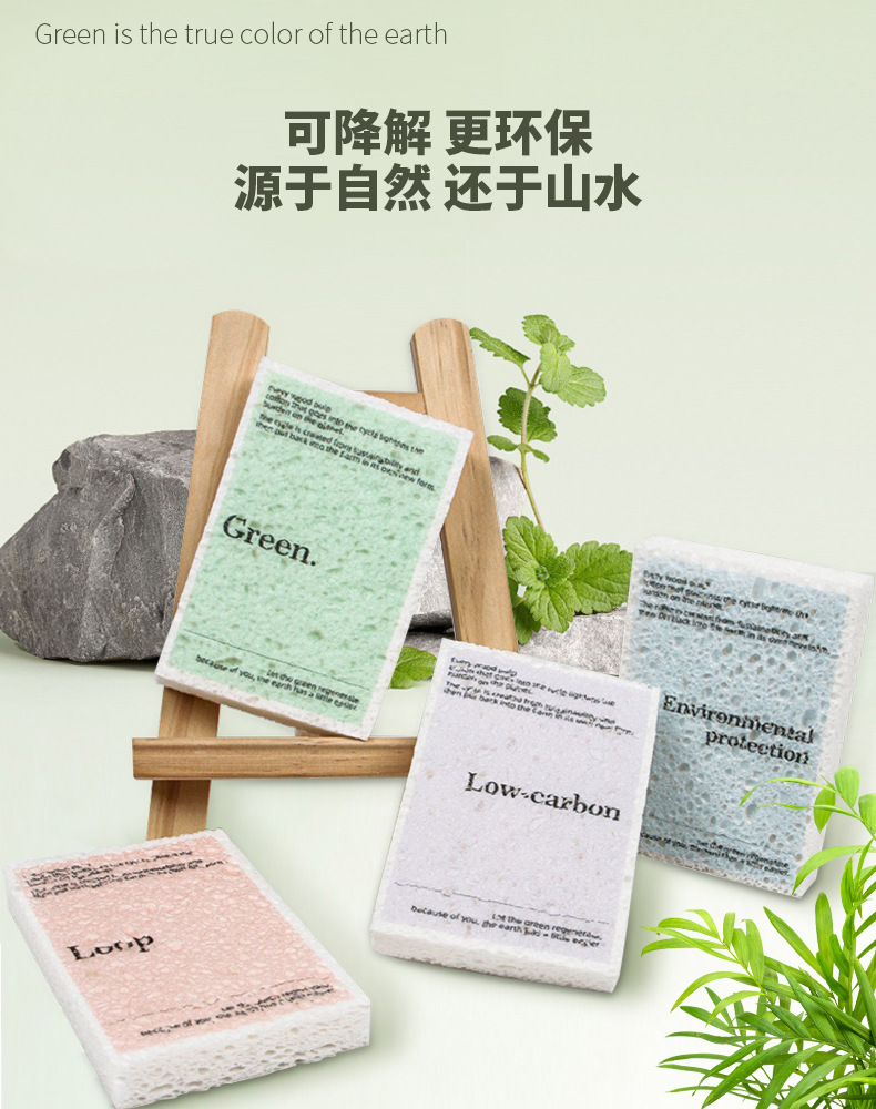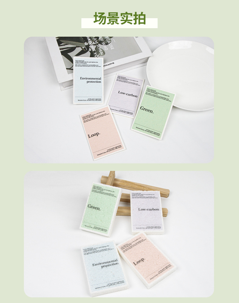 国境を越えたミルクティー店の連名型両面皿洗い綿天然圧縮印刷木質綿分解可能なアイデアスポンジ拭き