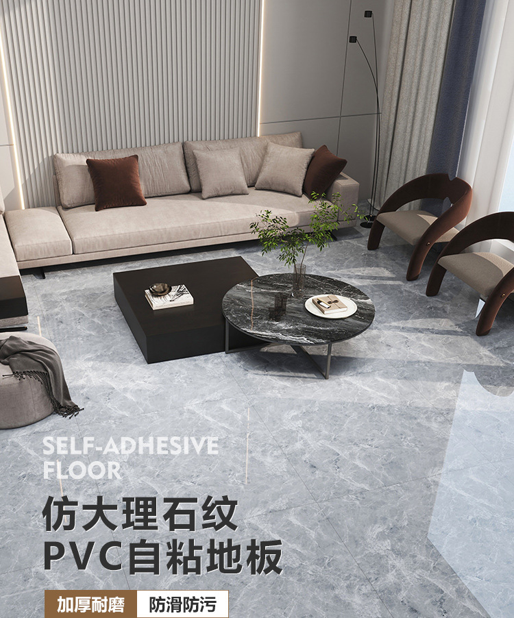 大理石風タイル床用接着剤、厚手の床用フィルム、セメント床に直接貼れる木目調自己粘着床用フィルム
