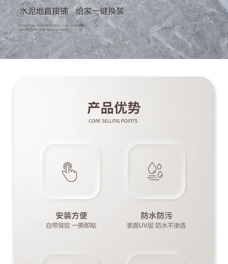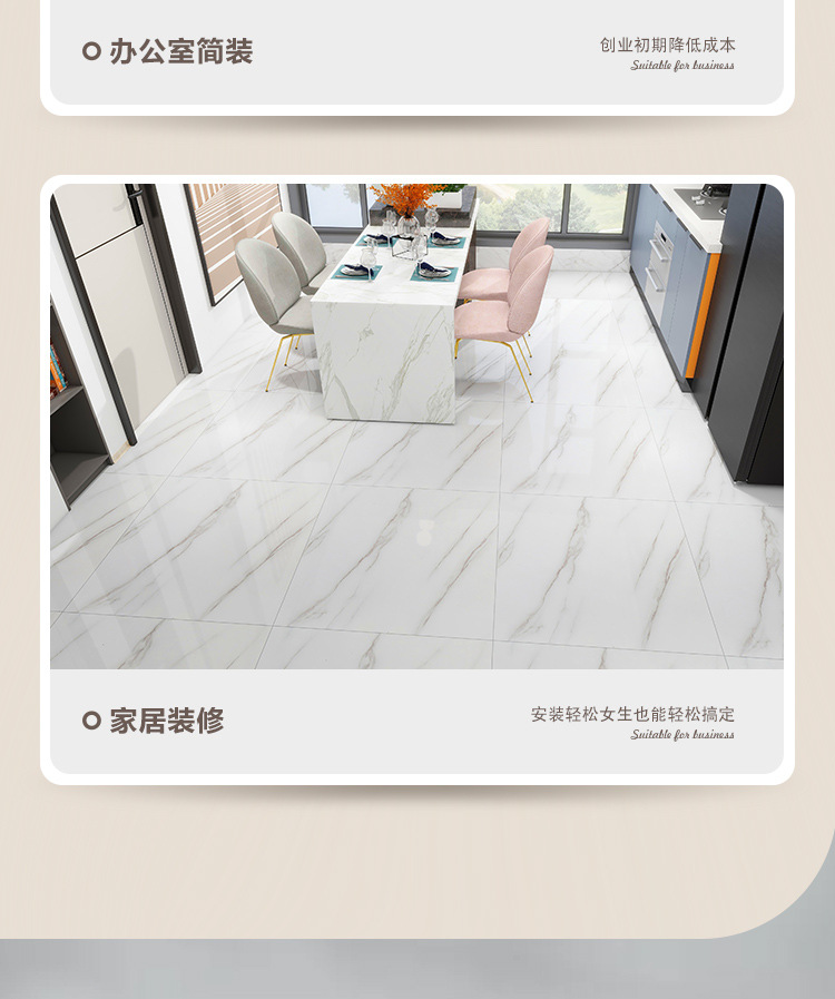 80*80cm光沢面に耐摩耗性防水床シールpvc自己接着商用セメント床革滑り止め