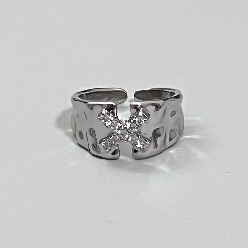小衆芒星カップルリング韓国版insデザイン感文字Xモザイクジルコン筋理指輪ファッション個性指輪