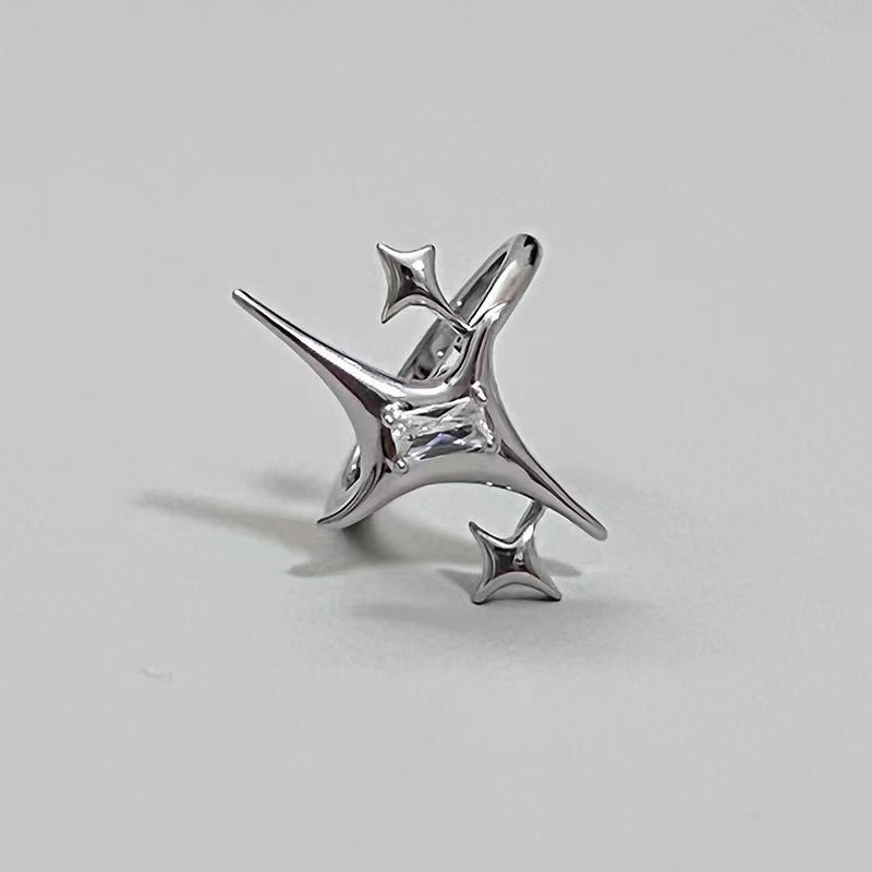 大衆デザイン感高級感ins冷淡な風星芒開口指輪女子学生ジルコン交差フランス柄