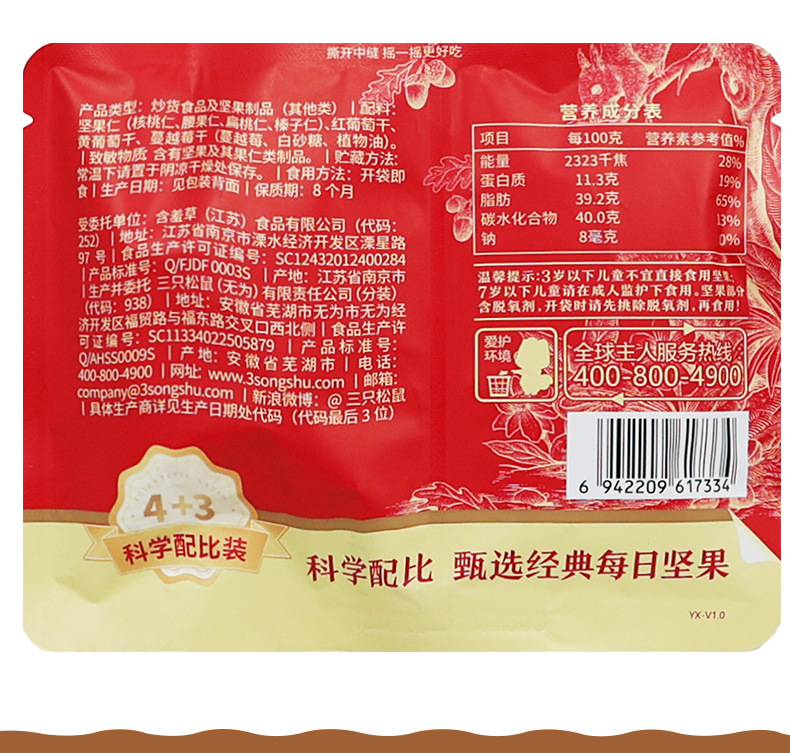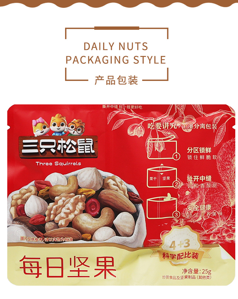 ドロップシッピング 3 つのリス デイリー ナッツ 750g 30 袋 高級スタイル 4 種類のナッツ 4 種類のドライ フルーツ ギフト ボックス