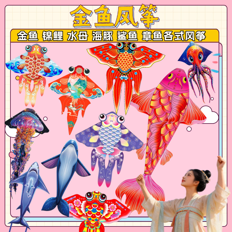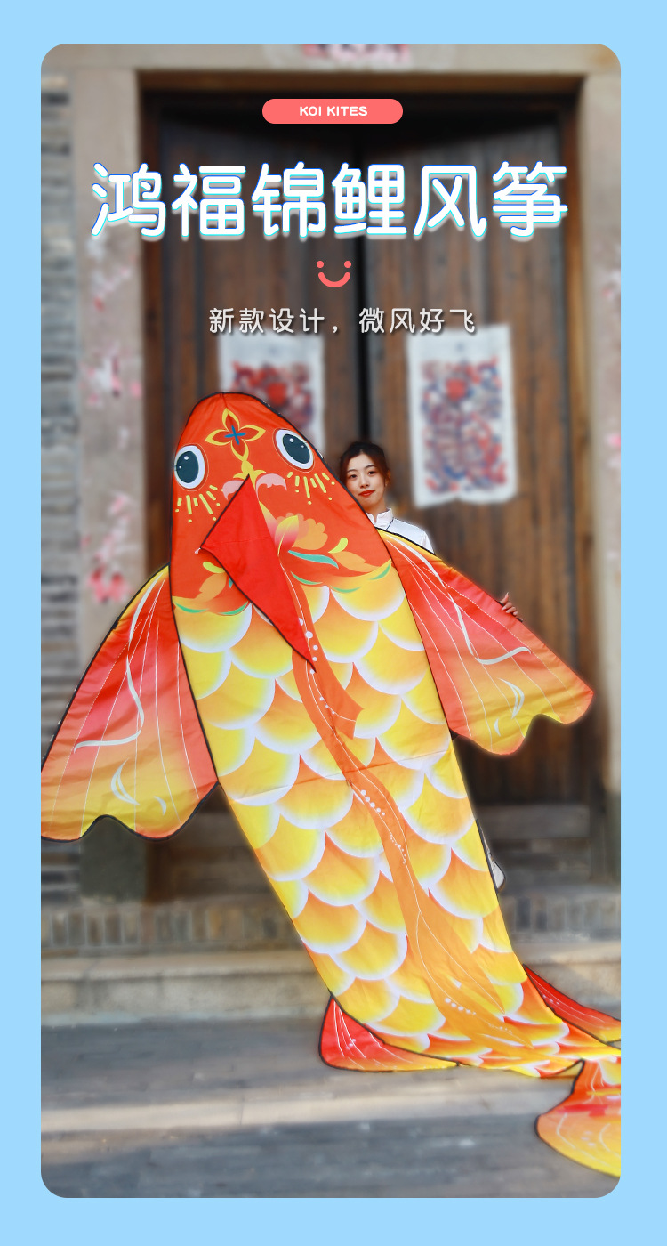 潍坊新作金魚凧、鯉凧、国潮大型大人用伝統国風子供用凧、工場卸売