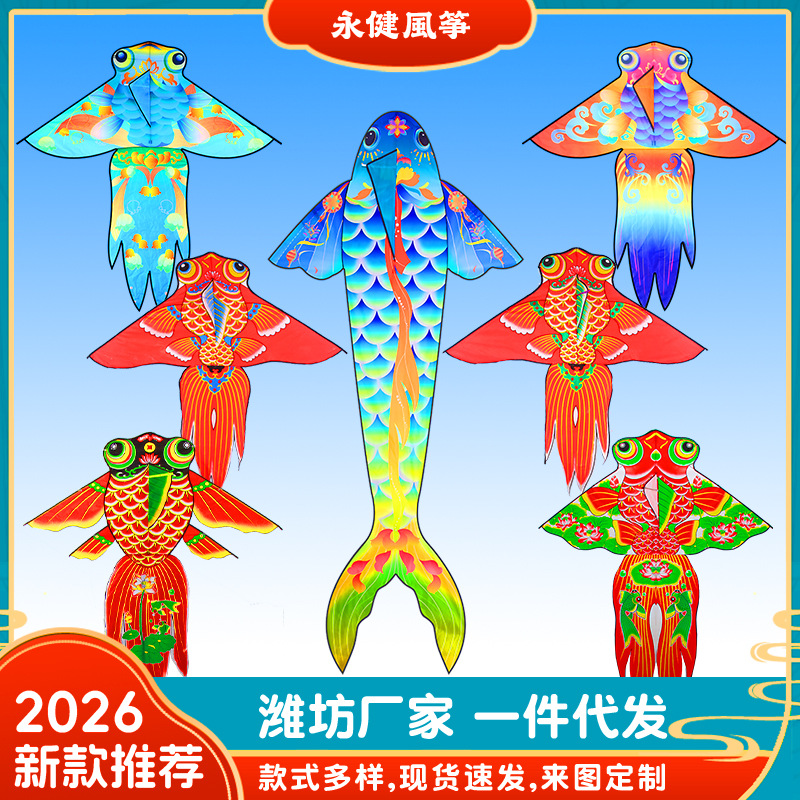 2026年濰坊永健新作アウトドア凧揚げ子供用金魚凧三角凧微風で簡単に飛ばせるおもちゃ