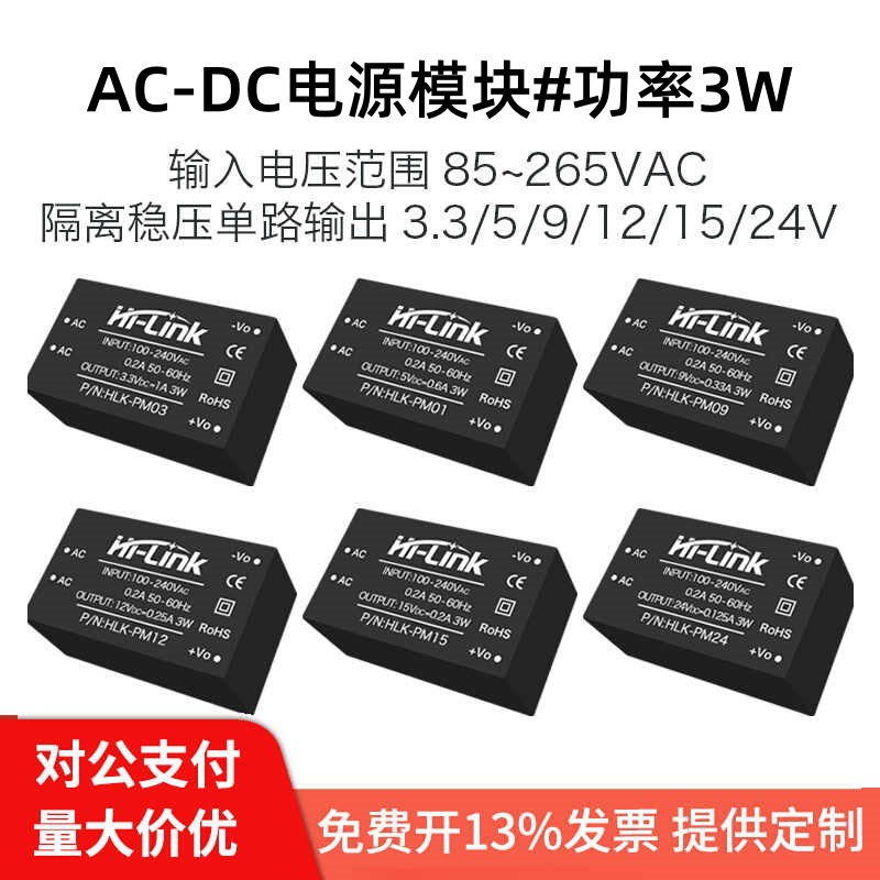 220V回転5V3.3V9V12V15V24V電源モジュールHLK-PM01 ACDC絶縁電源安定化出力