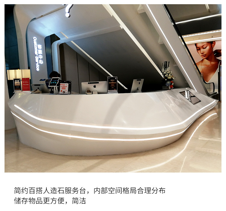 シームレスな一体型曲面アクリル人造石サービスデスク商業空間ハイエンドオフィスフロントデスクパーソナライズされたカスタマイズ