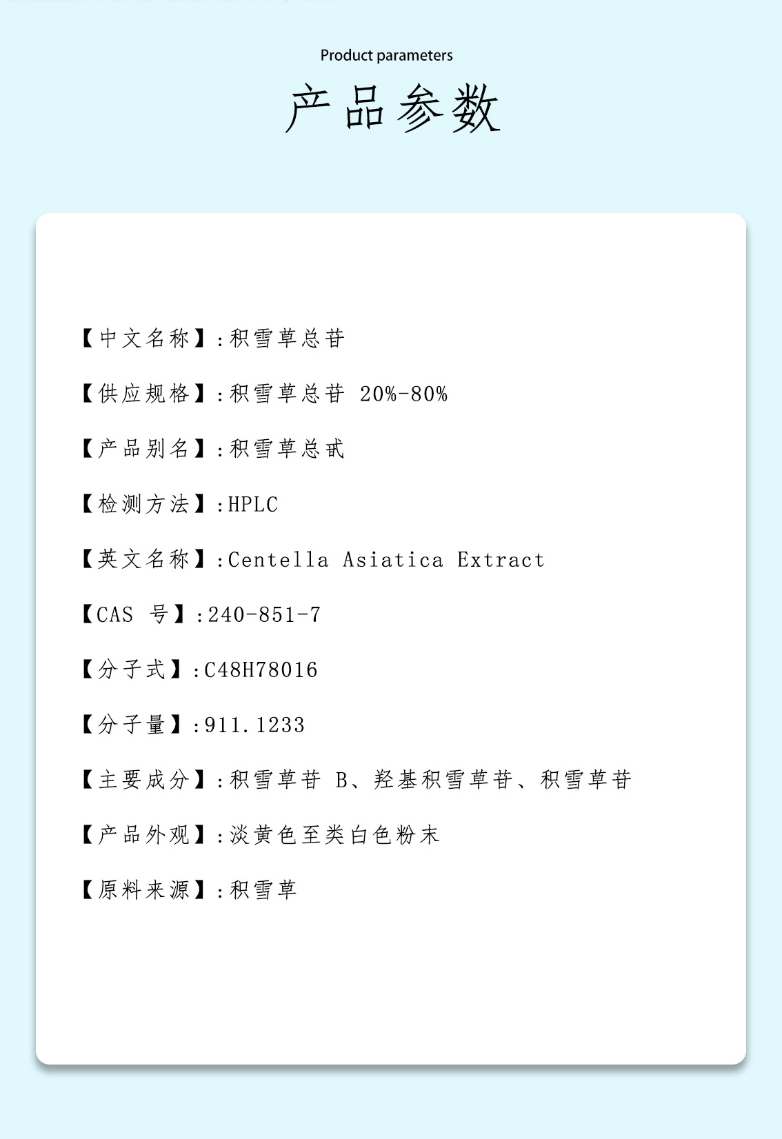 积雪草苷/甙70%~95%多规格积雪草提取物化妆品原料16830-15-2现货