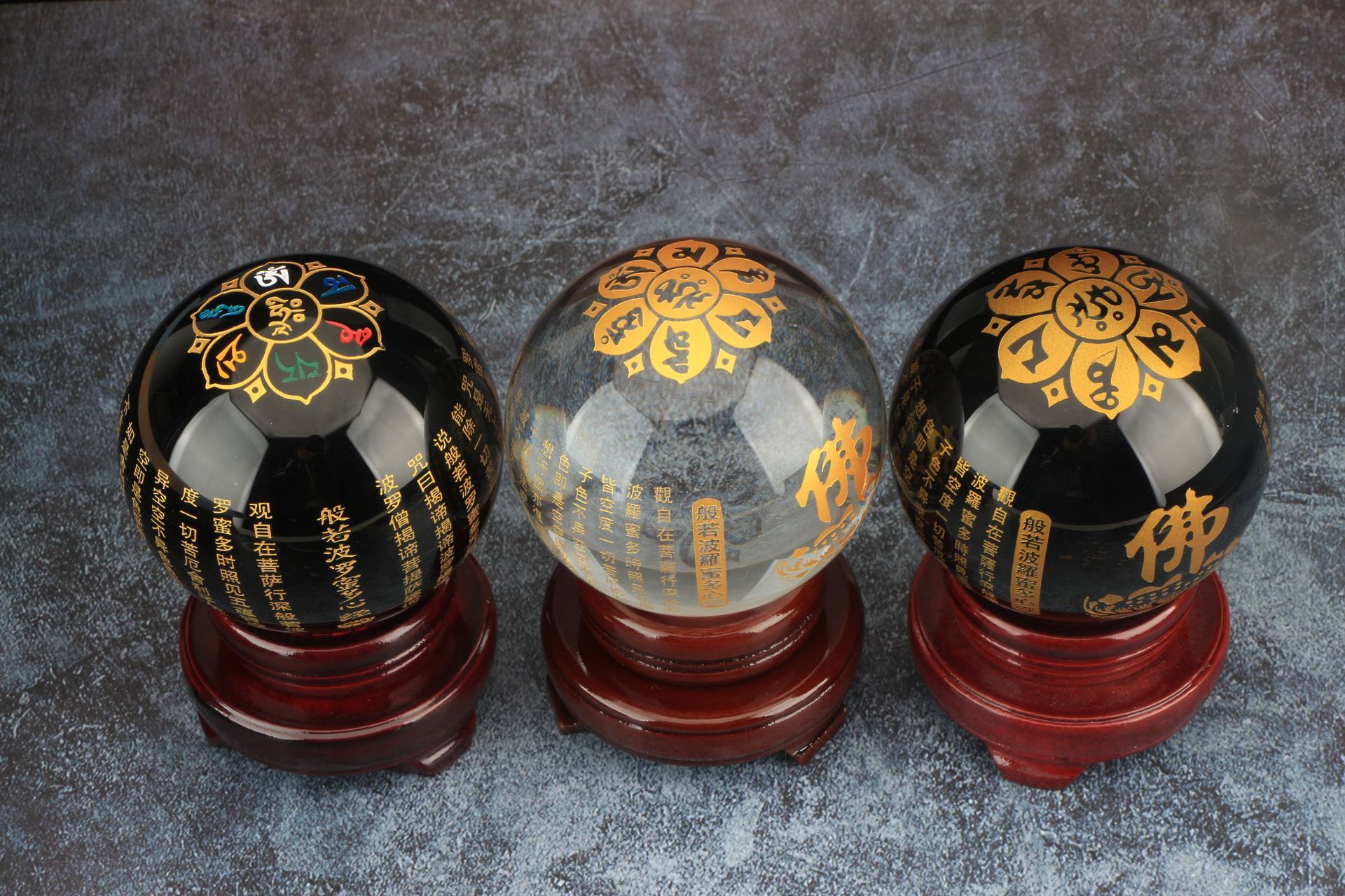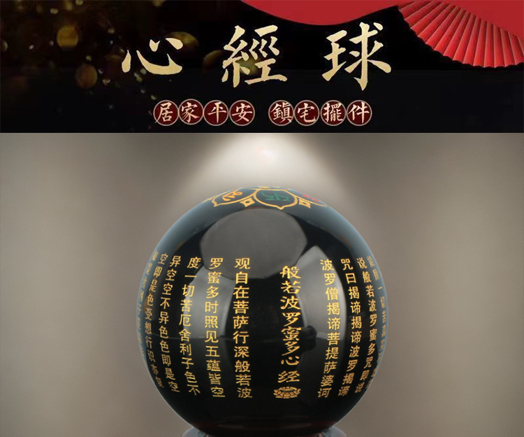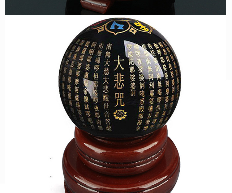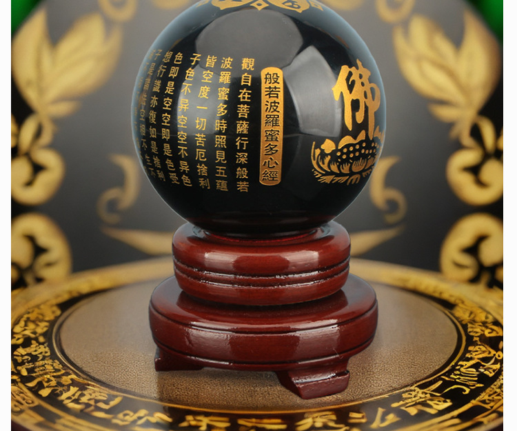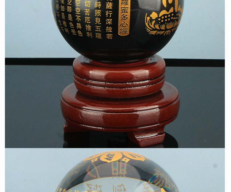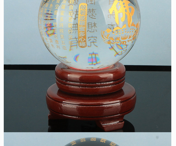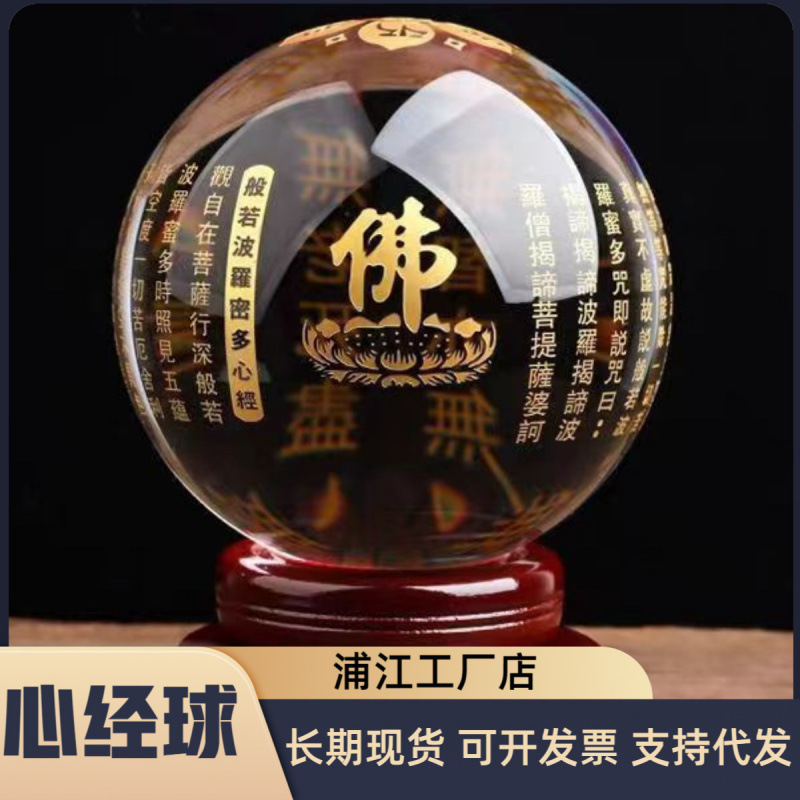 批发水晶心经球雕刻佛经文般若心经六字真言风水球供佛供桌玄关