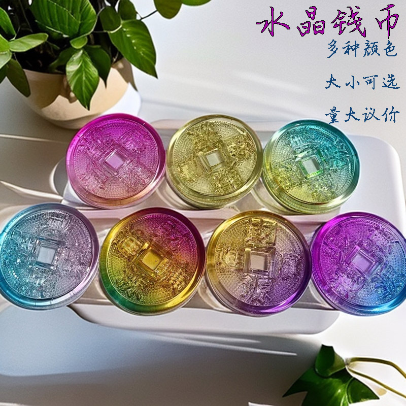 黄水晶の大きさの銅銭水晶のまぶしいお金の貨幣のカラーの5帝の銅のお金の水晶の乾隆なかよしの5帝のお金の置物