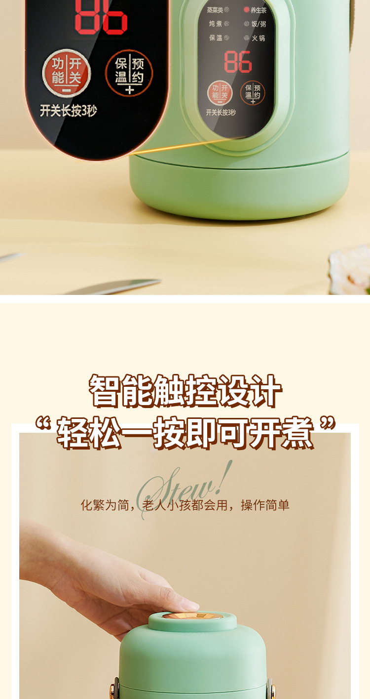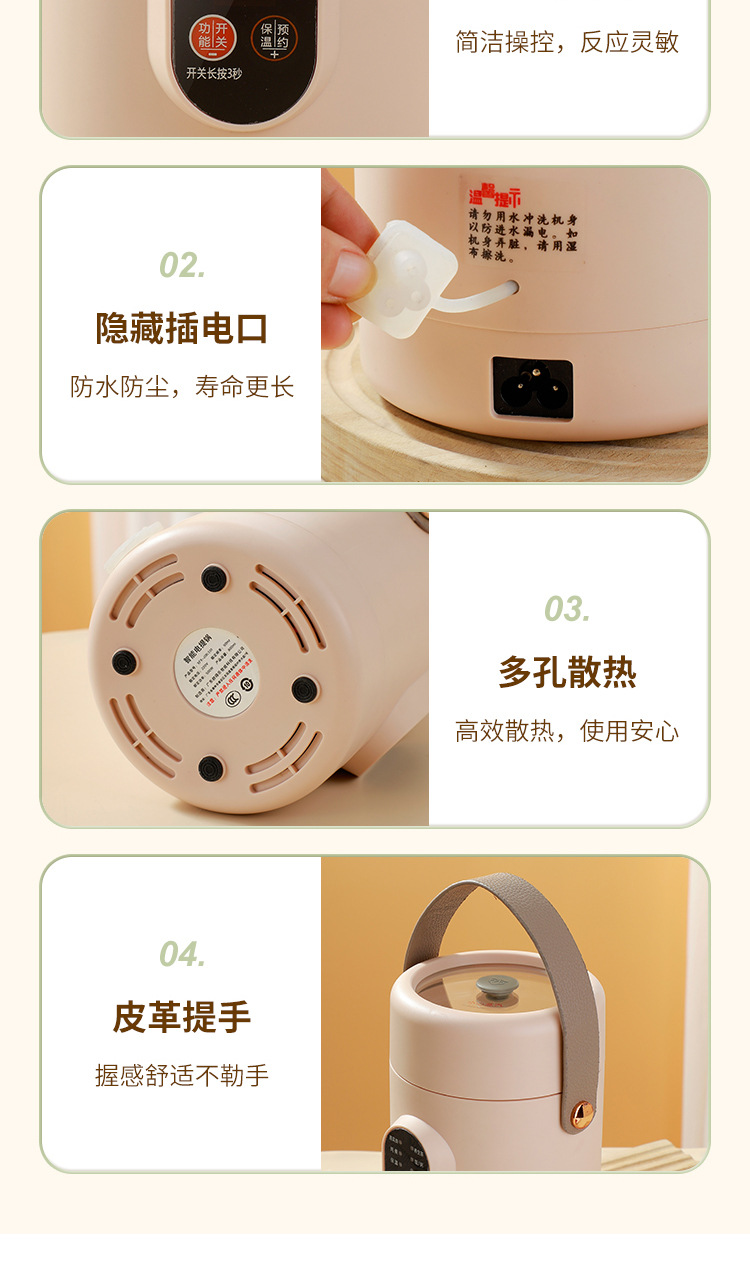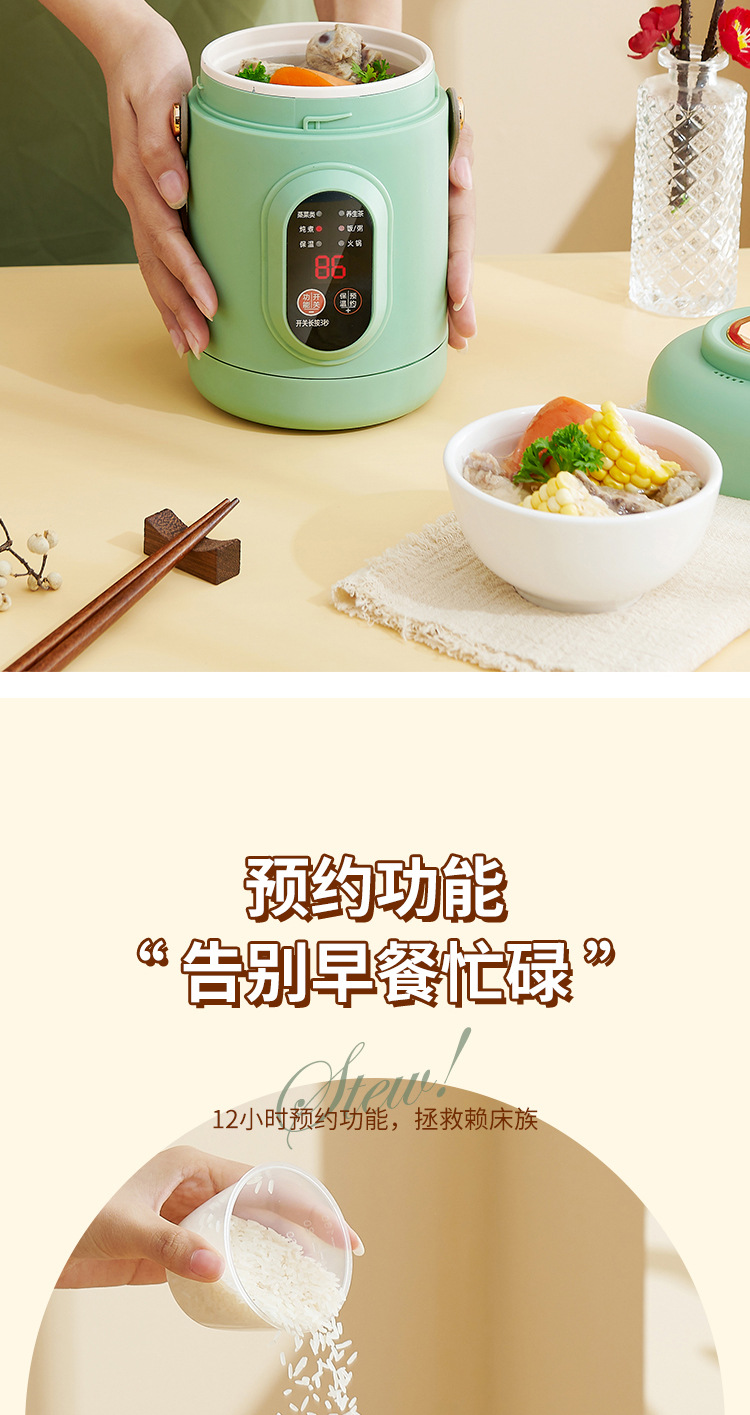 スマート電気シチュー鍋携帯スープ煮粥保温桶家庭予約補助食品電気シチューカップオフィス電気シチューカップ