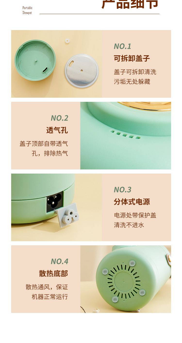 カスタマイズ可能なポータブル小型スープ鍋、多機能、ベビーフード、赤ちゃんのお粥、1~2人用スープ、全自動電気スープ鍋