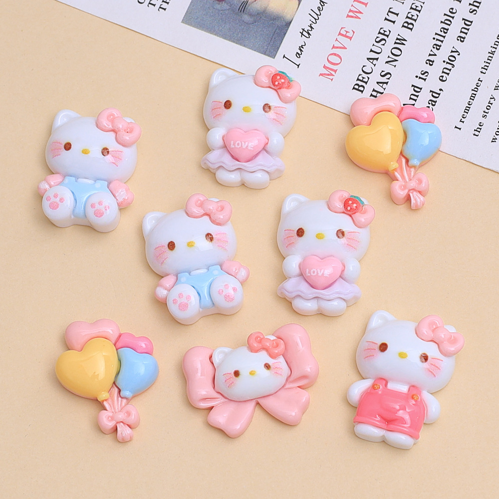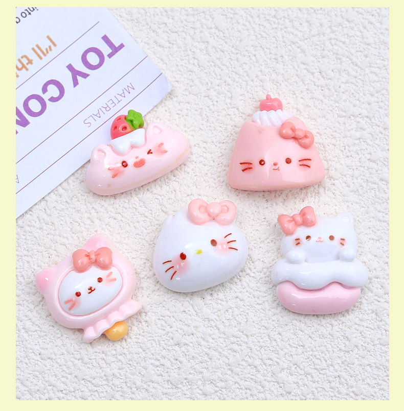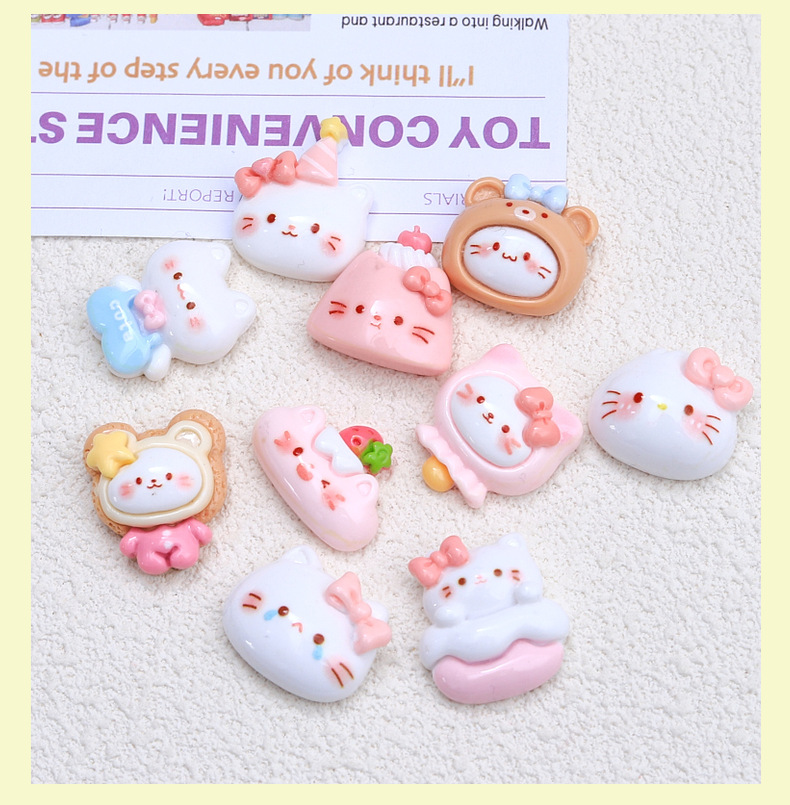 卡通抱心喵喵可爱手工diy自制饰品配件奶油胶树脂小配件发夹材料