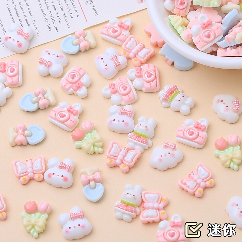 ミニソフト萌えウサギ漫画手作りdiyネイルアートかわいいクリームヘアピンアクセサリー樹脂アクセサリー材料バッグ