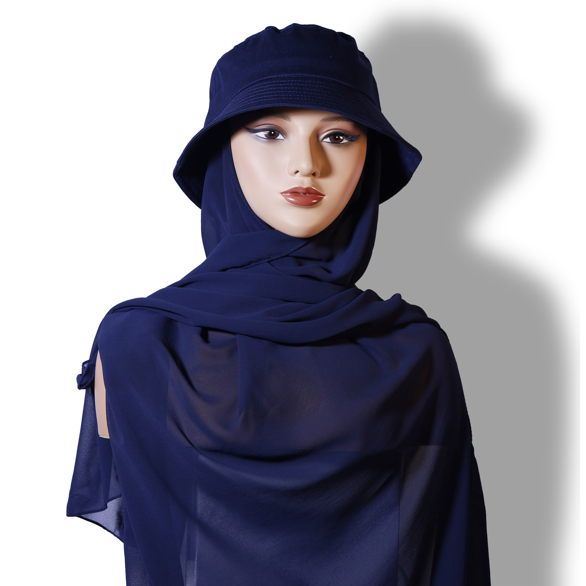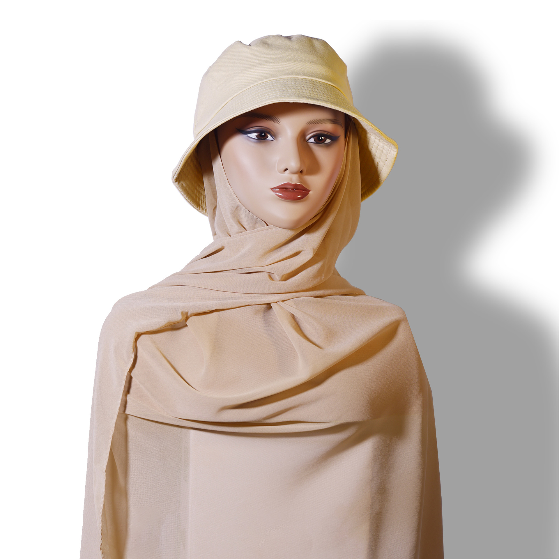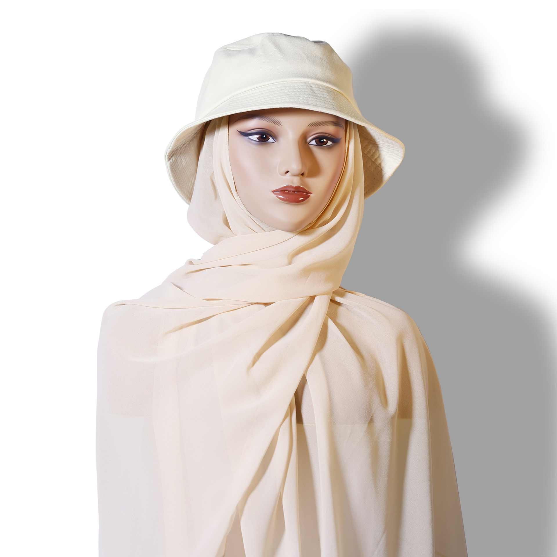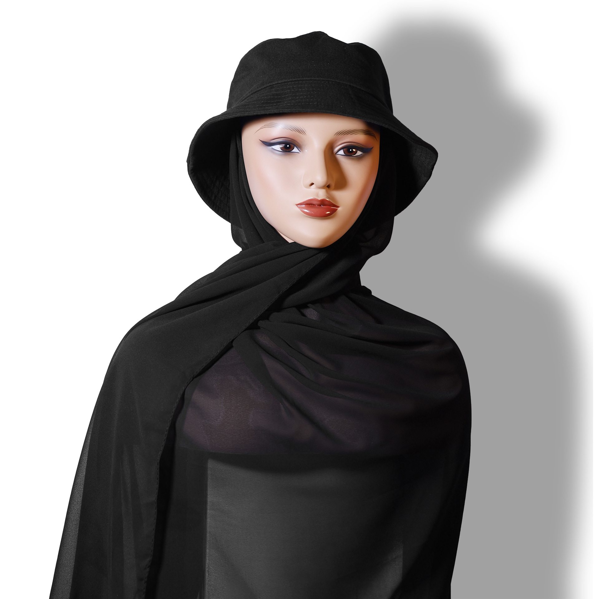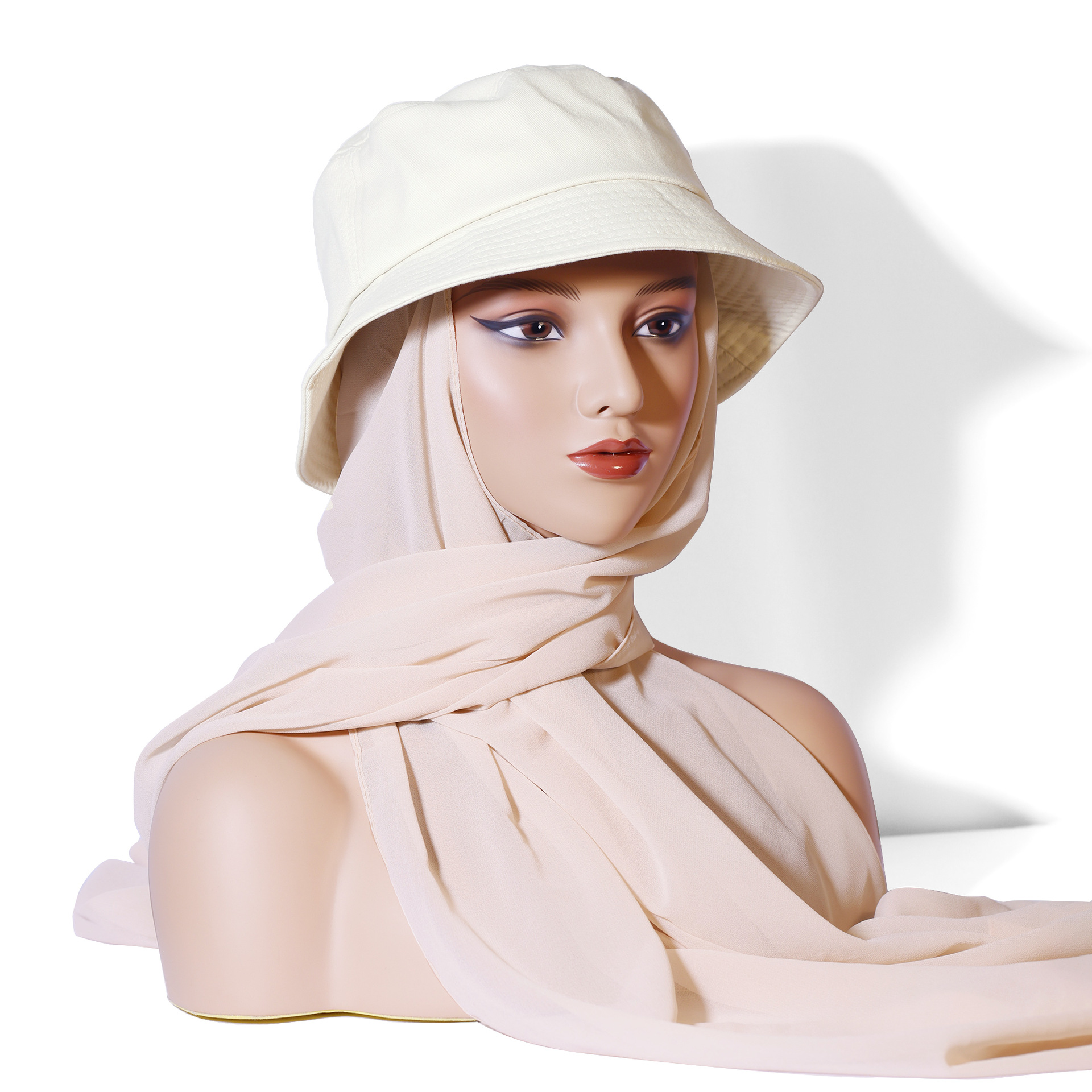 新作シフォンヘッドスカーフとベースキャップのセット、単色パールシフォンロングスカーフとベースキャップの一体型セット