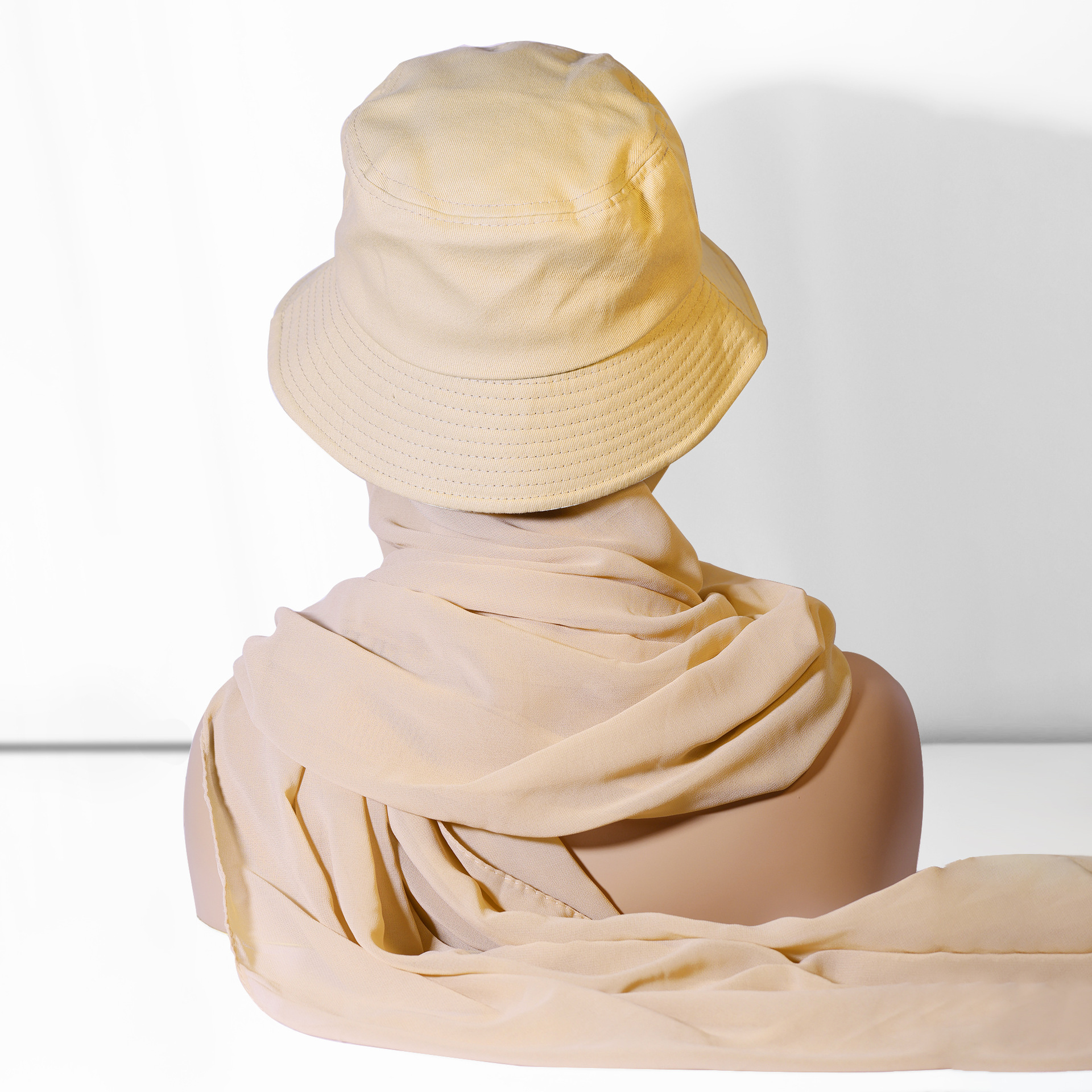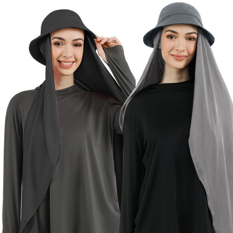 新しいファッションの単色のセットの頭巾の純色のシフォンと漁師の帽子のマフラーの帽子のワンピースの組み合わせの夏の日よけ