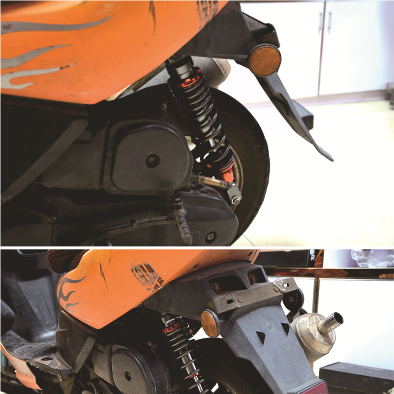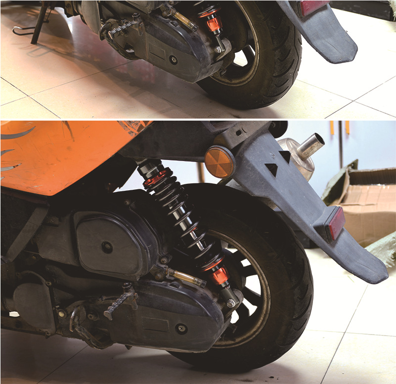 オートバイは汎用部品を改造して、瓶の後のダンパーを持っています。