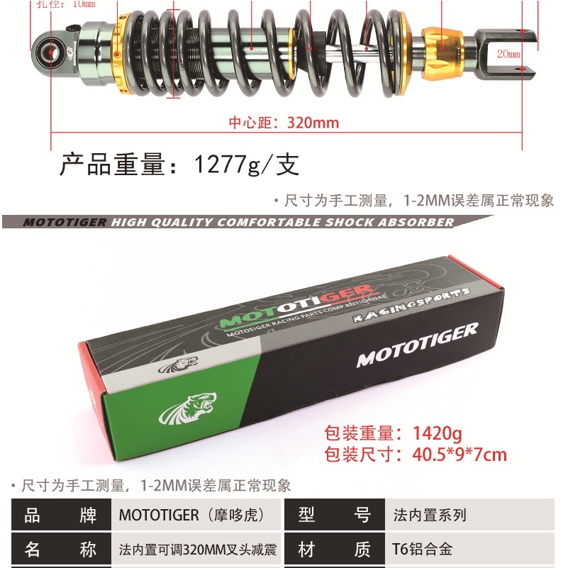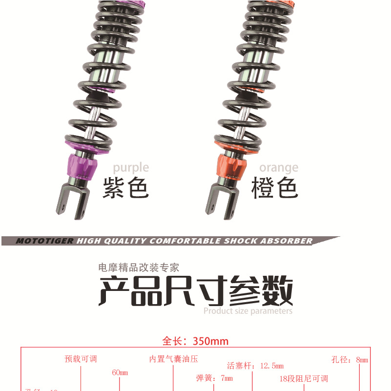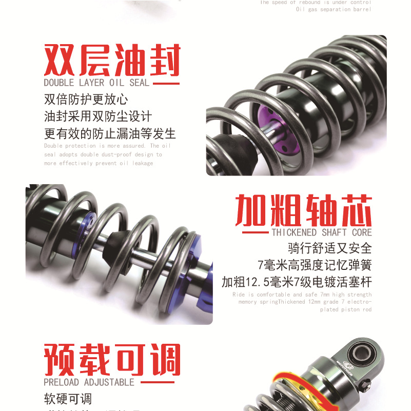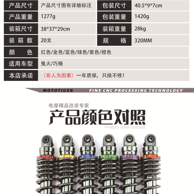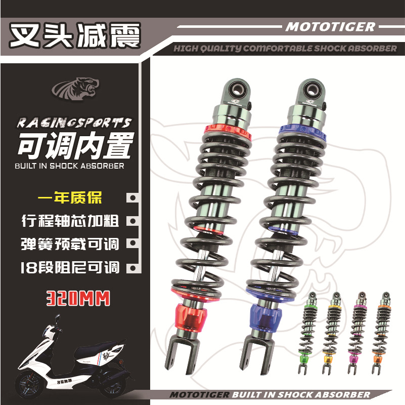 摩托车减震器改装后减震320MM长度 可调节阻尼24档叉头黑弹簧避震