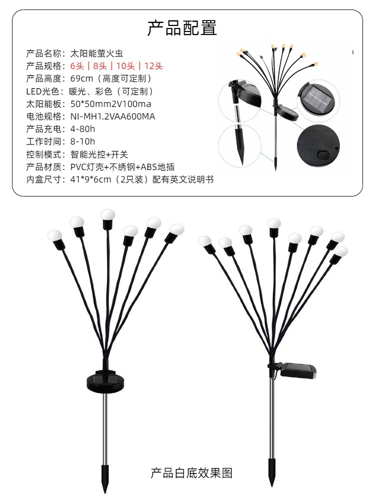 仕様の分類 暖かい白6頭のアップグレード金,暖かい白8頭のアップグレード金,暖かい白10頭のアップグレード金,暖かい白12頭のアップグレード金,カラフルな6つのアップグレードモデル,カラフルな8つのアップグレードモデル,カラフルな10ヘッドのアップグレード金,カラフルな12ヘッドのアップグレード金,ソーラー6目玉-パープル,ソーラー6目玉-レッド,ソーラー6目玉-グリーン