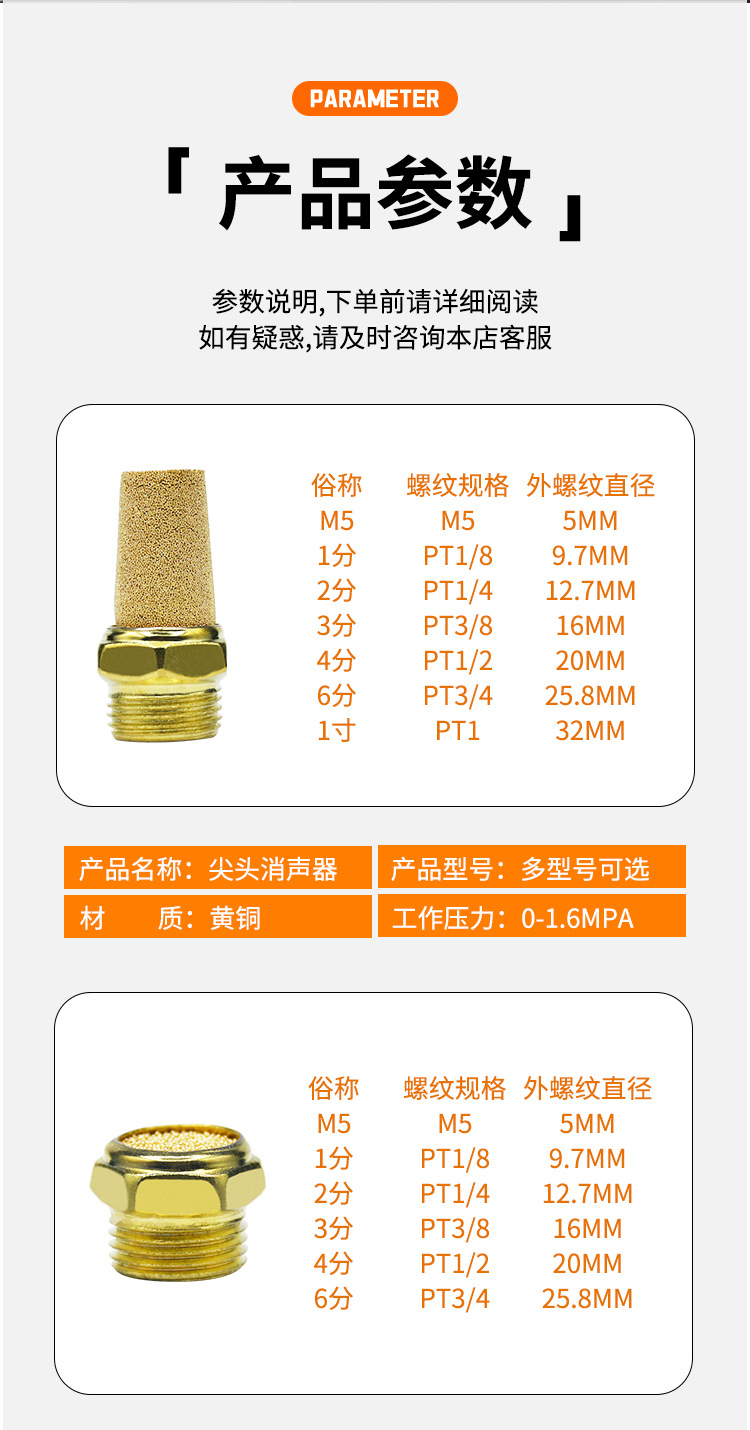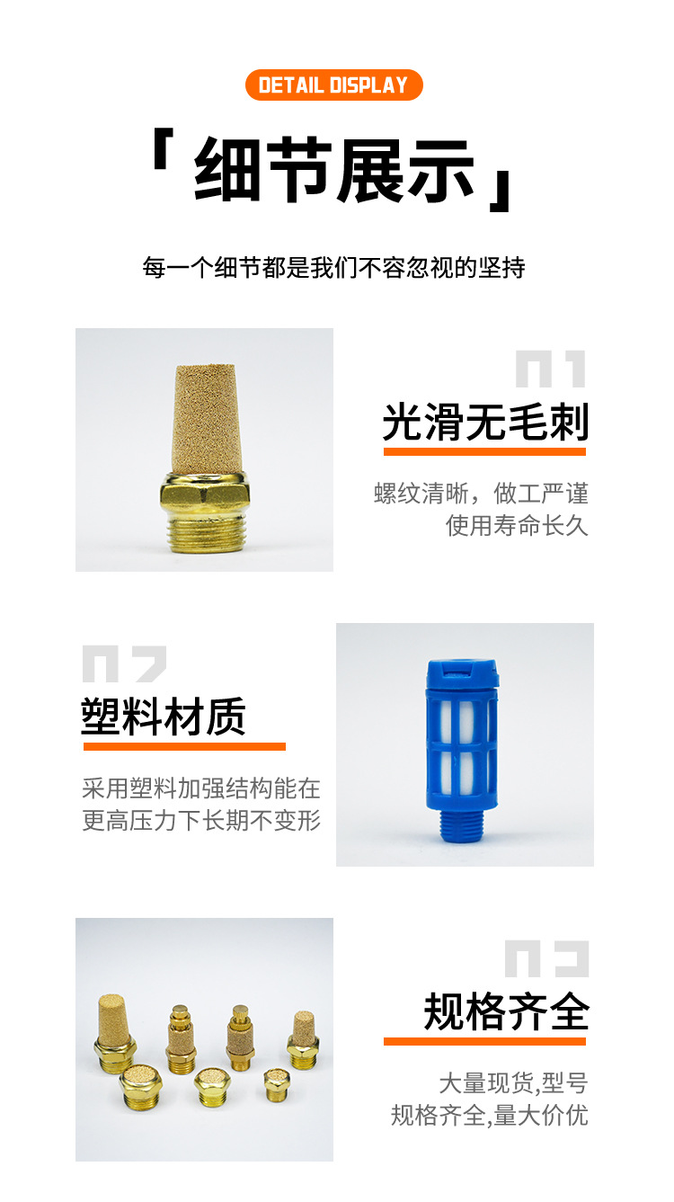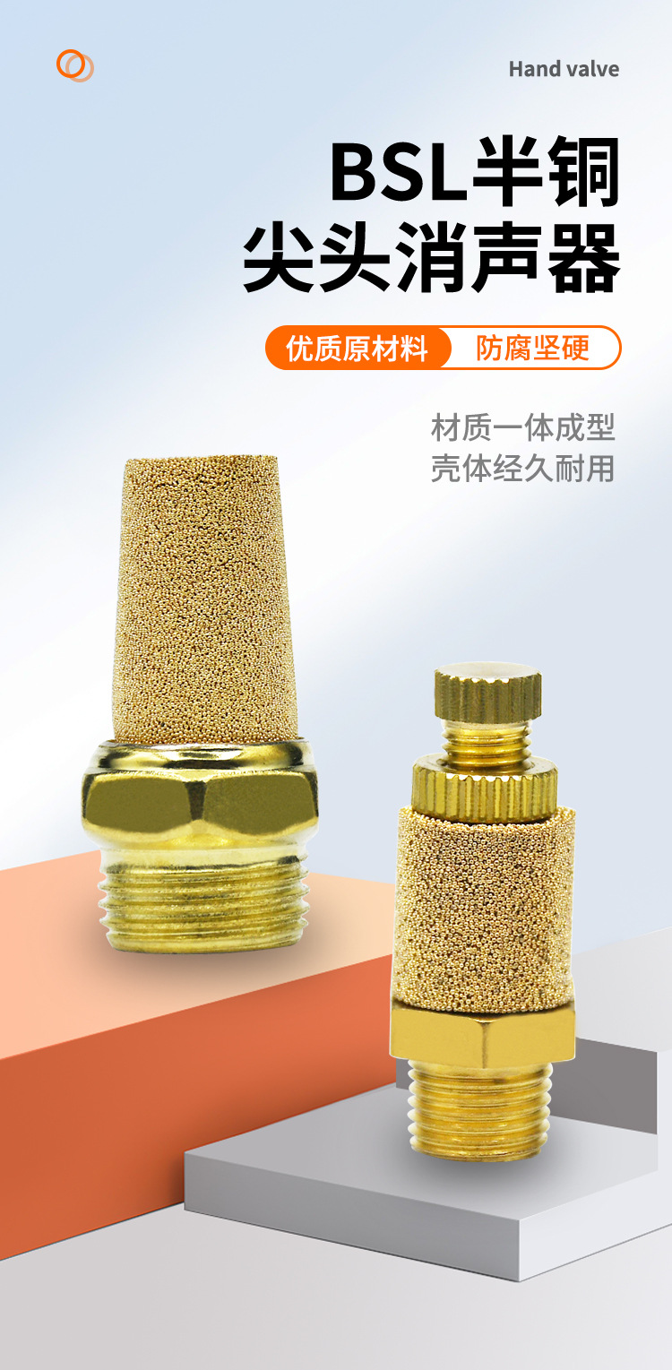 平头/长头/节流全铜消声器 半铜 BSL-M5降噪音气动降噪静音器