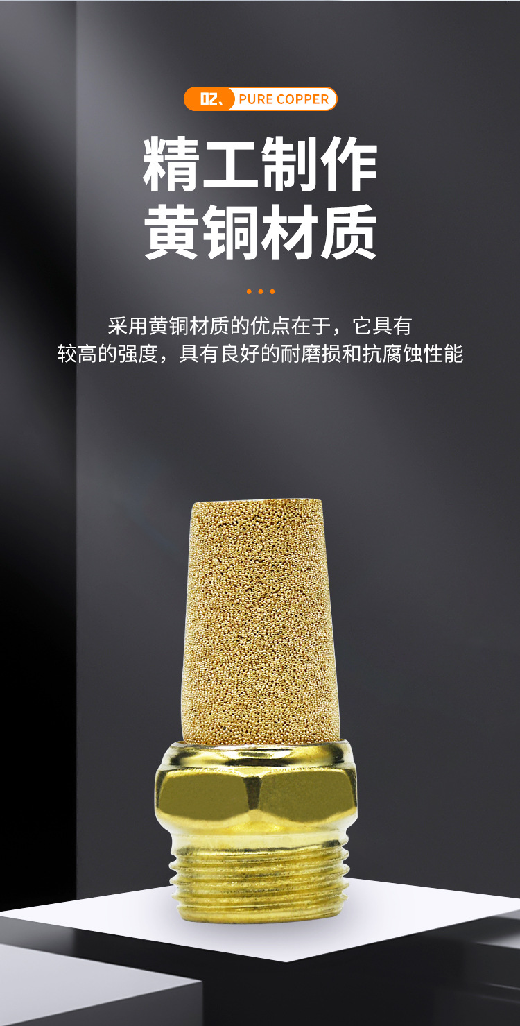 銅製長頭サイレンサー、真鍮製平頭空気圧電磁弁サイレンサー、半銅製M5排気1/2インチフィルタージョイント