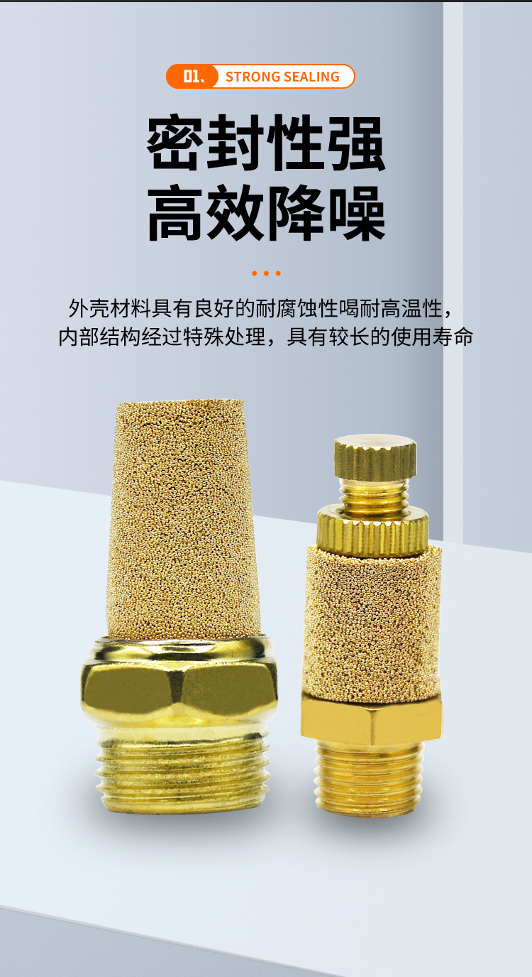 銅長頭マフラー黄銅平頭気動電磁弁降音器1分2インチフィルタコネクタ