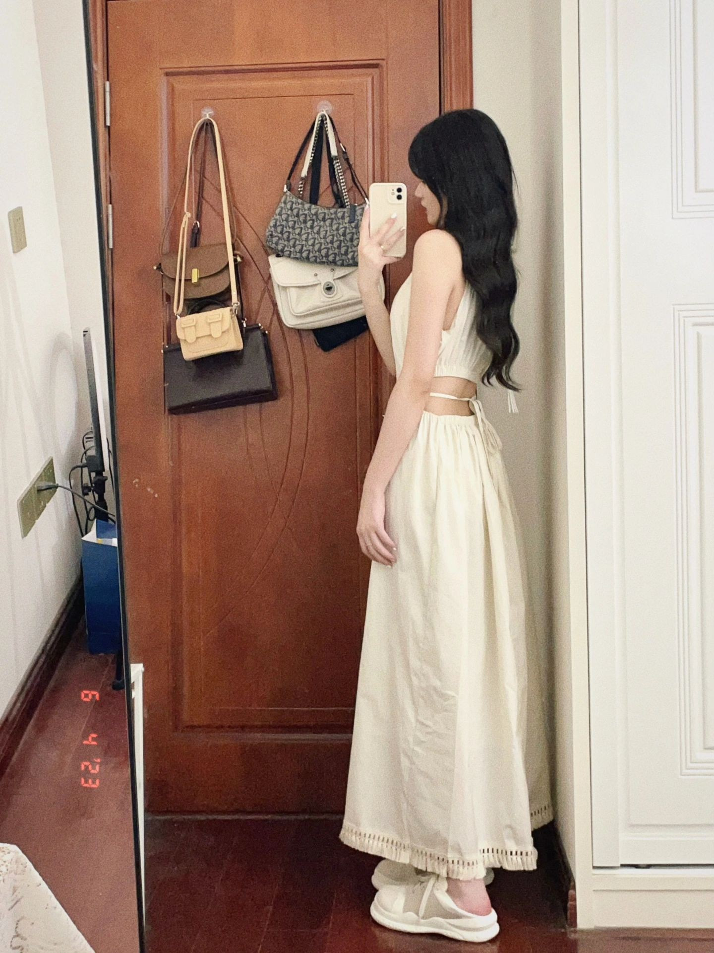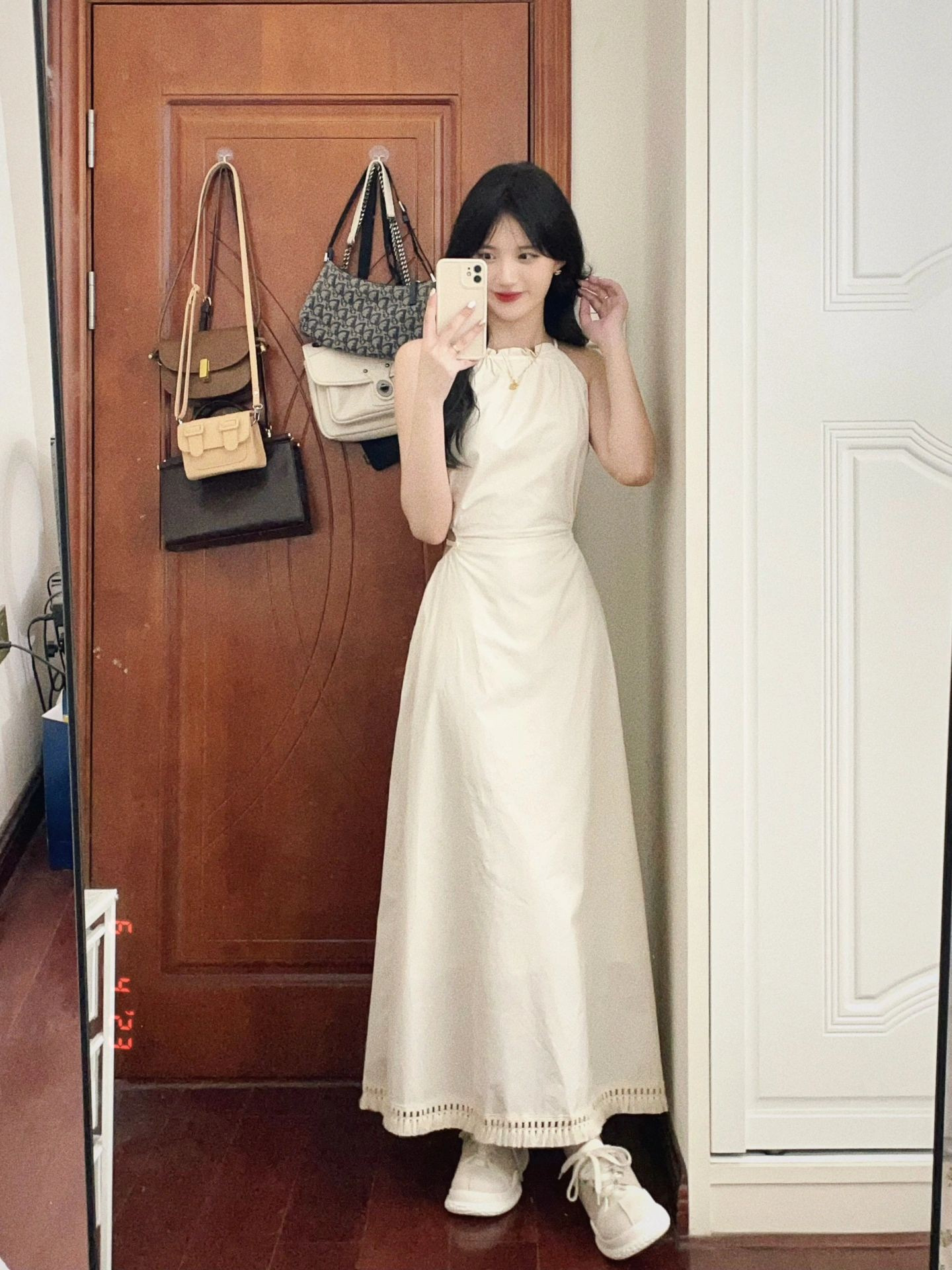 ホワイトドレスレディース夏2025新しいフレンチスタイルノースリーブベストウエスト痩身ロングスカート婦人服