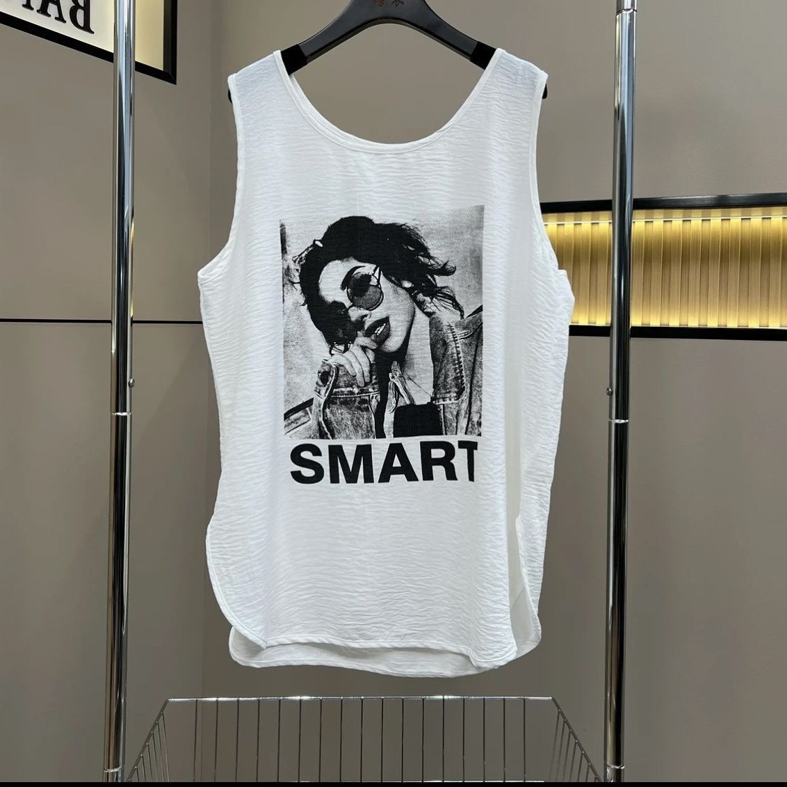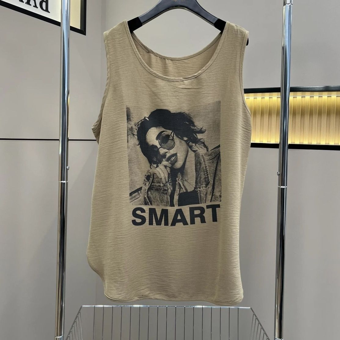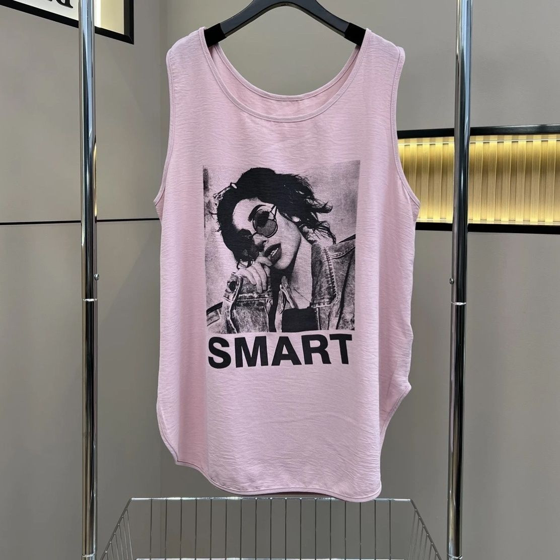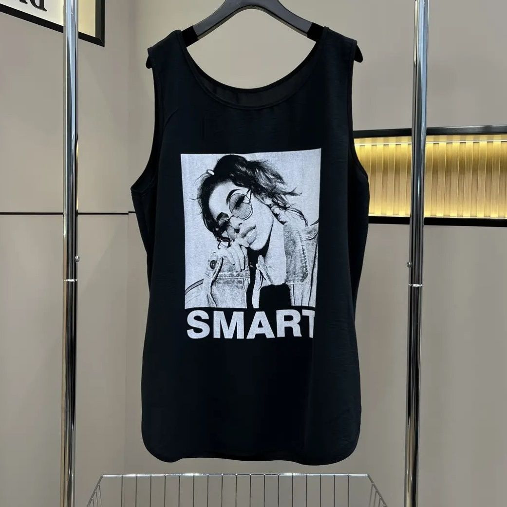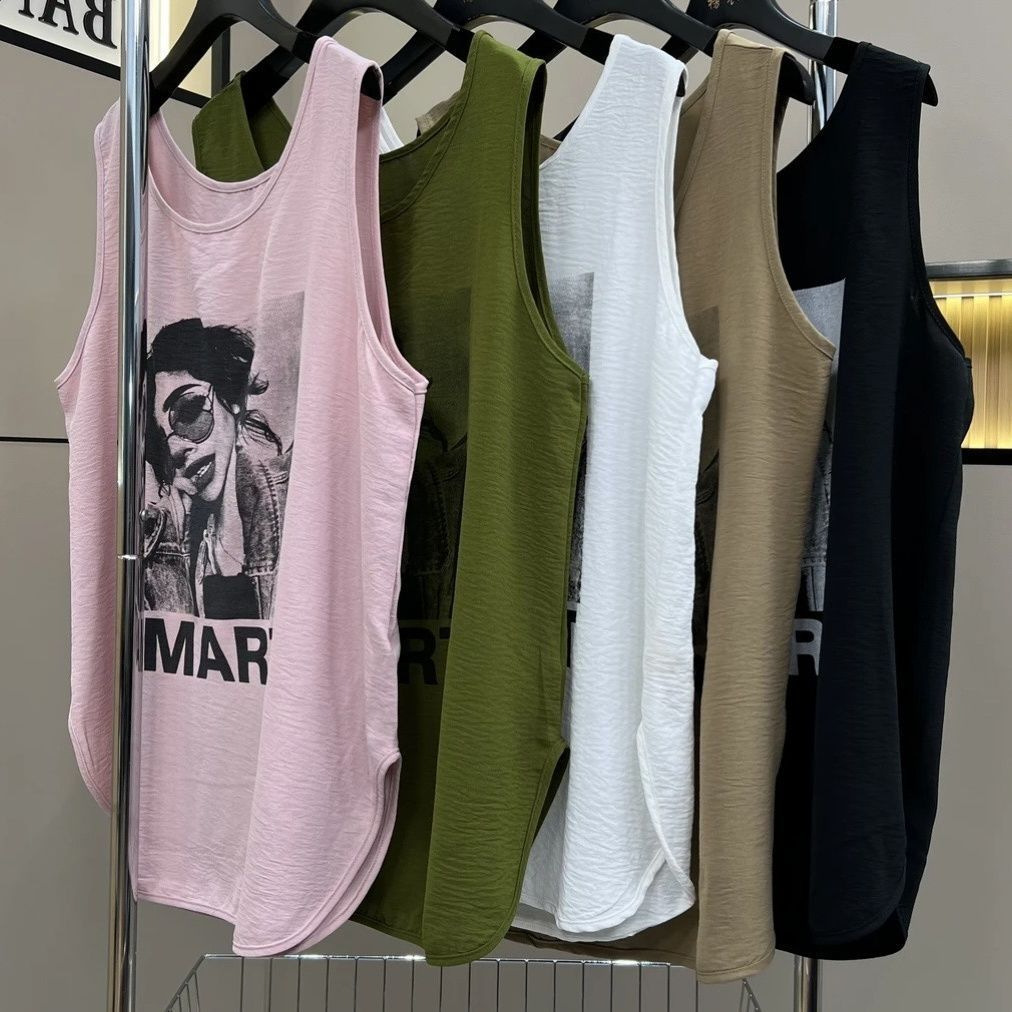 アマゾンのノースリーブベスト女性クロスボーダー夏の新型プリントゆるい百合上着ファッション裾丸みtシャツ