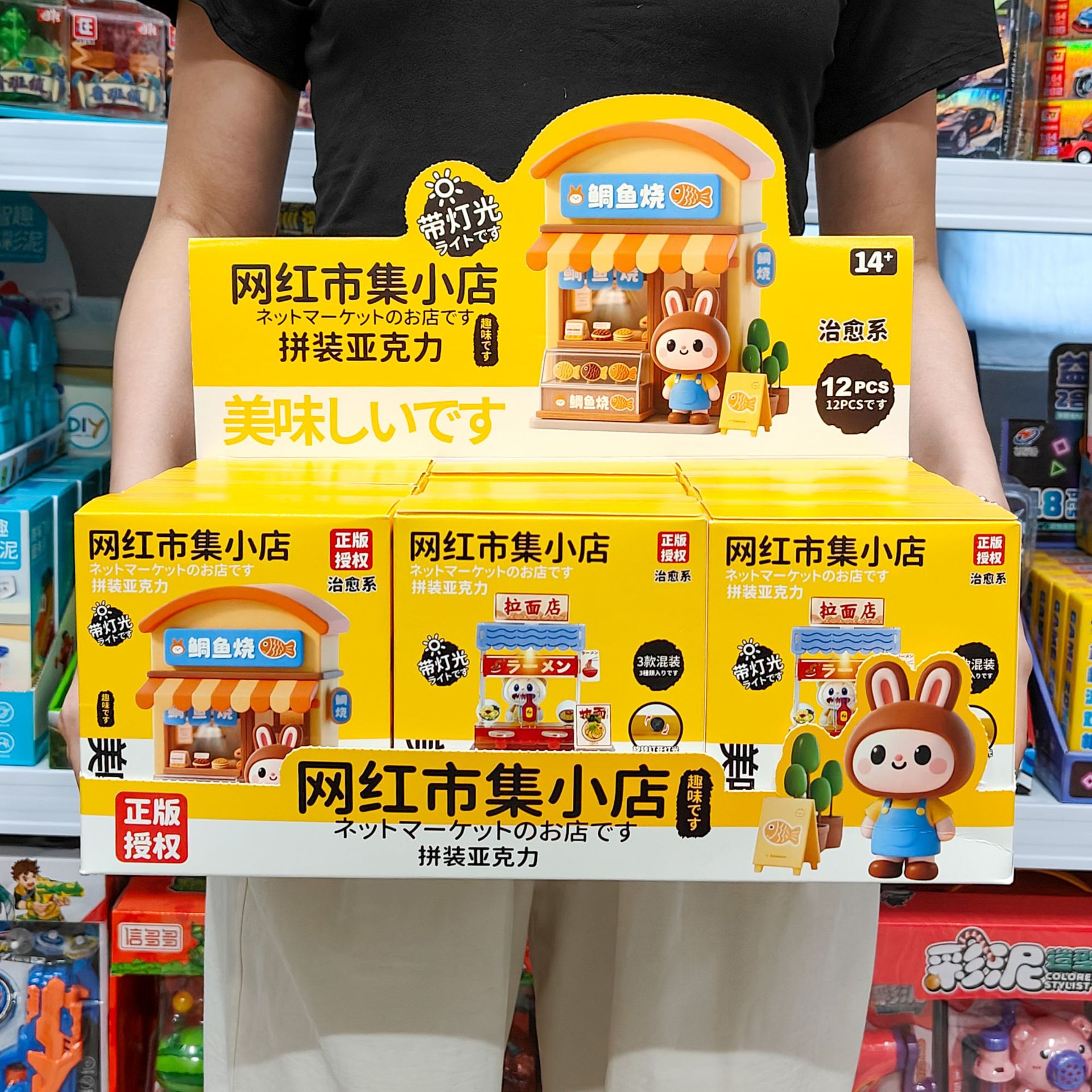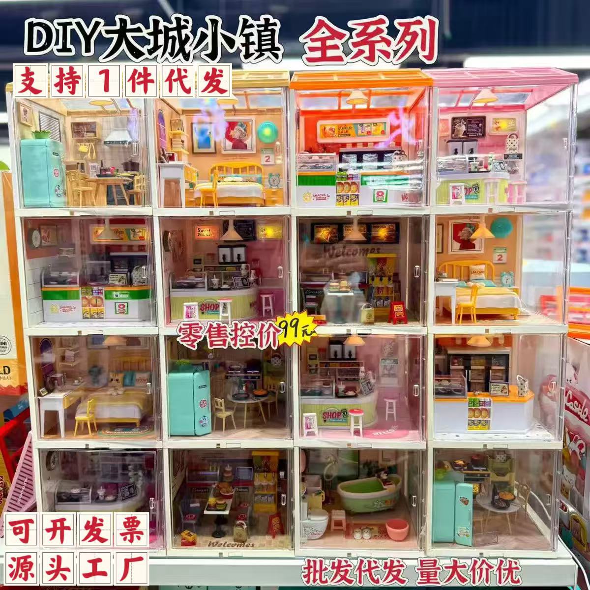 益智DIY微缩集市小摊模型灯光男孩女孩创意拼装儿童玩具礼物批发