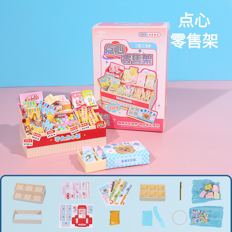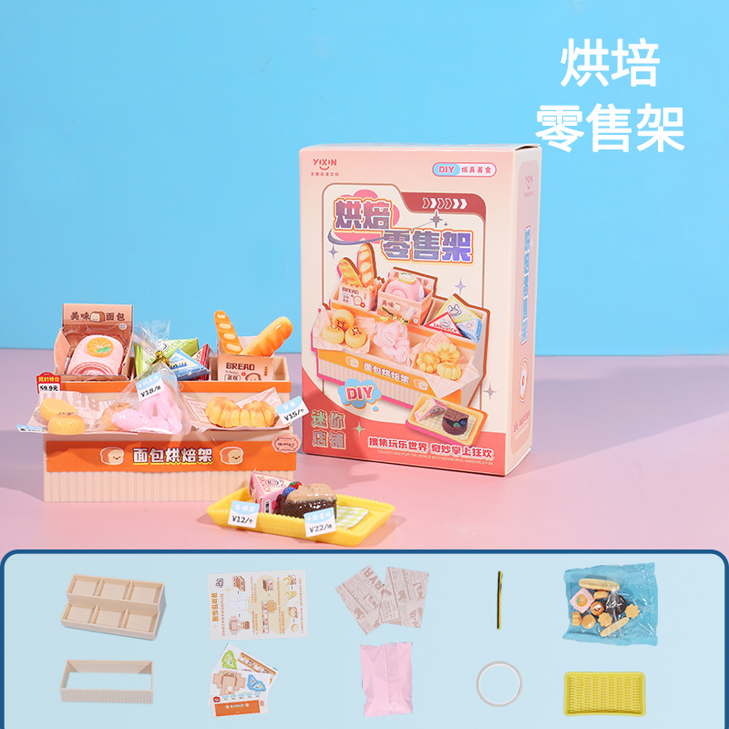 芸馨の間食のミニ店舗の棚のミニチュアのシーンのDIYは食事をシミュレーションして家をまくって手作りの子供のおもちゃを遊びます。