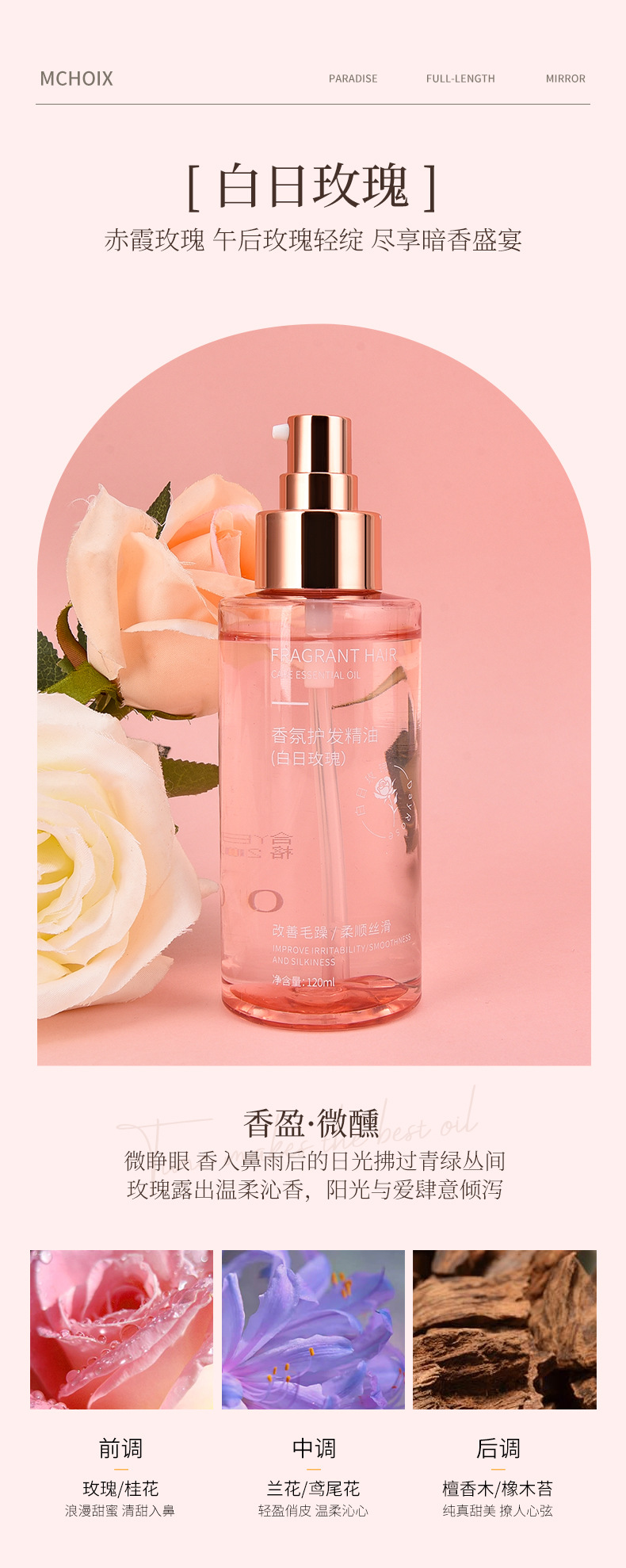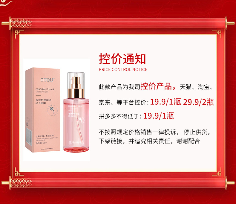 赤い本の爆発的なヘアケア精油のスプレーが明るくて滑らかで、パーマを改善して乾燥して損傷した髪の質を持続的に香りを残す