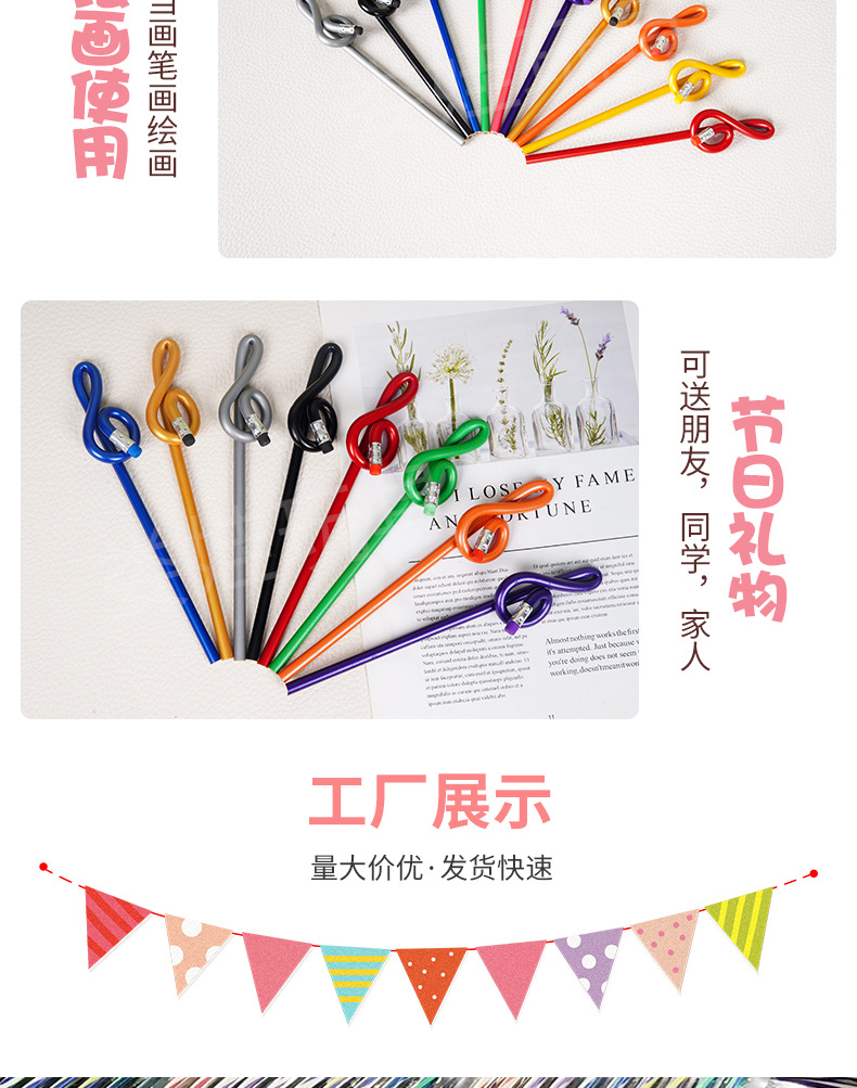 かわいいカラー音楽記号HB字木製鉛筆学習用品学生文房具速売通アマゾン
