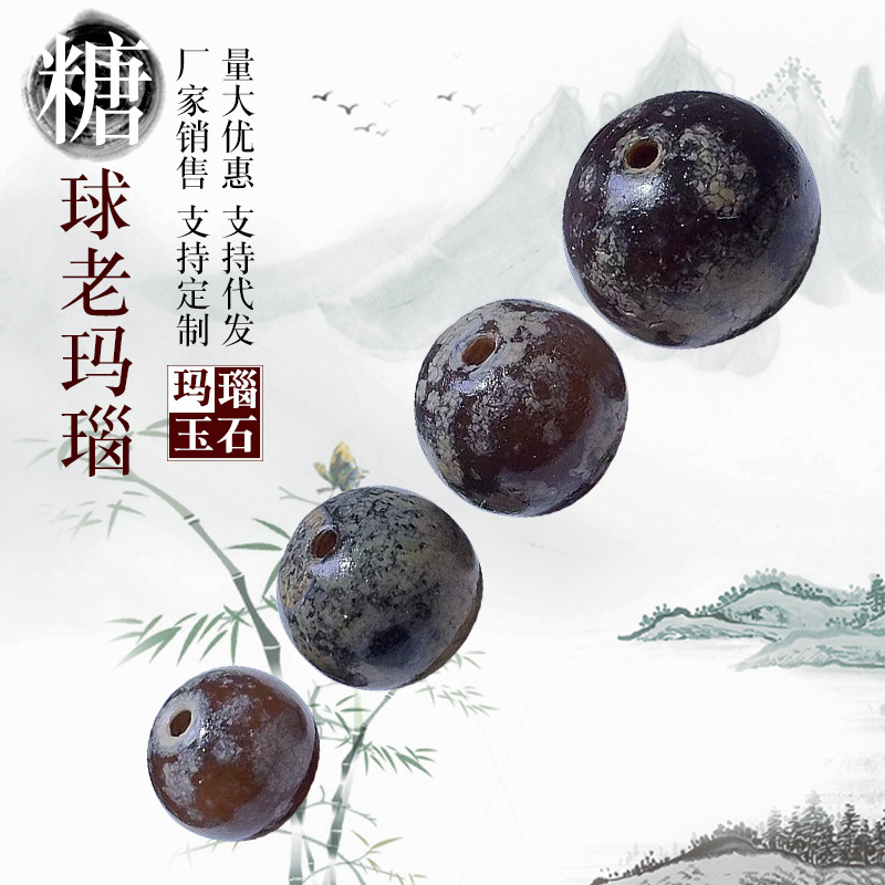 天然古い瑪瑙絵石ラウンドビーズ DIY ルースビーズビーズゴビカラーチベットネックレス分離ビーズルースビーズアクセサリービーズ