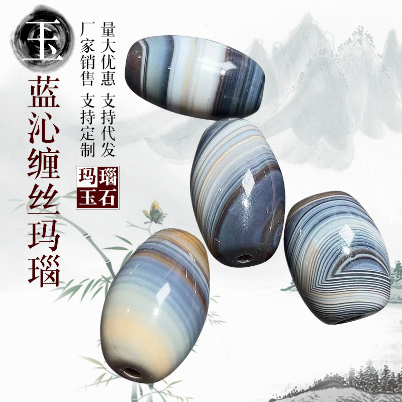 メーカー販売藍沁巻き糸瑪瑙散珠DIY配珠多宝珠玉散珠ビーズ卸売り瑪瑙珠