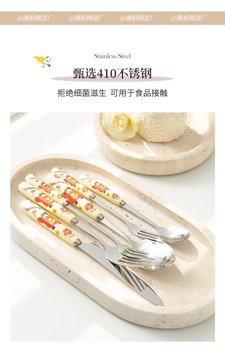漫画ステンレススプーン家庭用セラミック柄デザートスプーン果物フォーククリエイティブスプーンかわいい