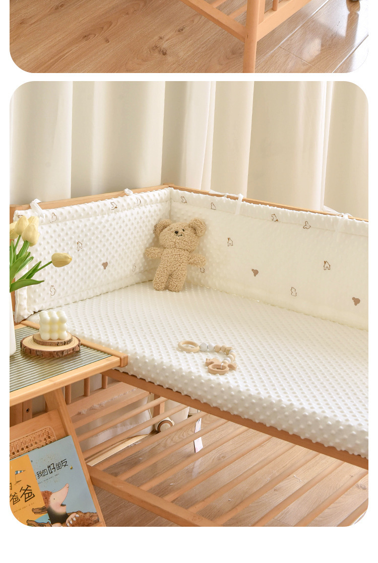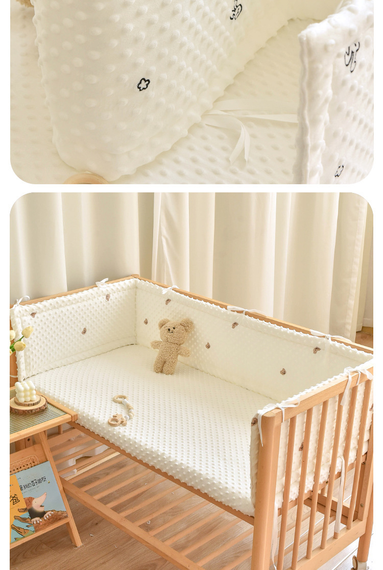 婴儿床床围四季可拆洗豆豆绒防撞围挡拼接床两面三面防摔软包纯棉