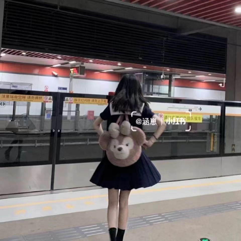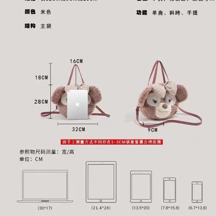 Zhao Lusiと同じスタイルのかわいいバッグ、ダッフィーベアの大きな顔のバッグ、学生バッグ、ぬいぐるみバッグ、多用途の漫画のショルダーバッグ