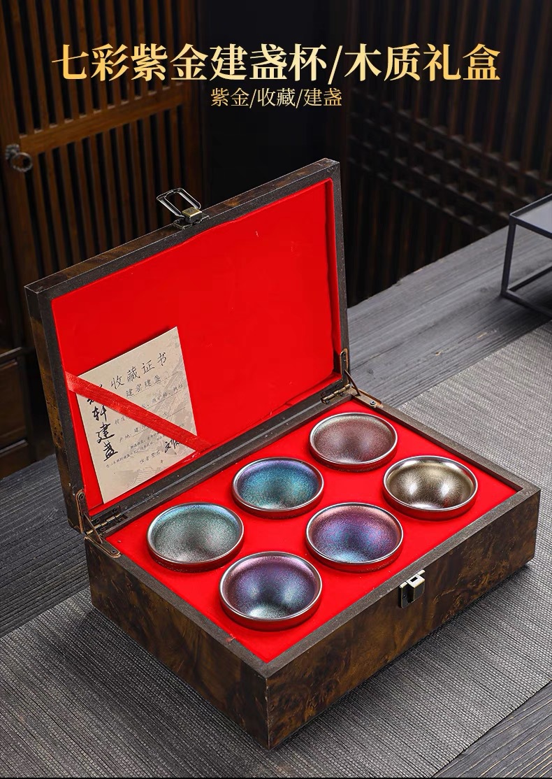 杯の窯を建てて天目釉薬の9色の杯の礼箱のセットのメーカーの直接販売の大きいサイズの主人の杯の笠の杯を変えます。
