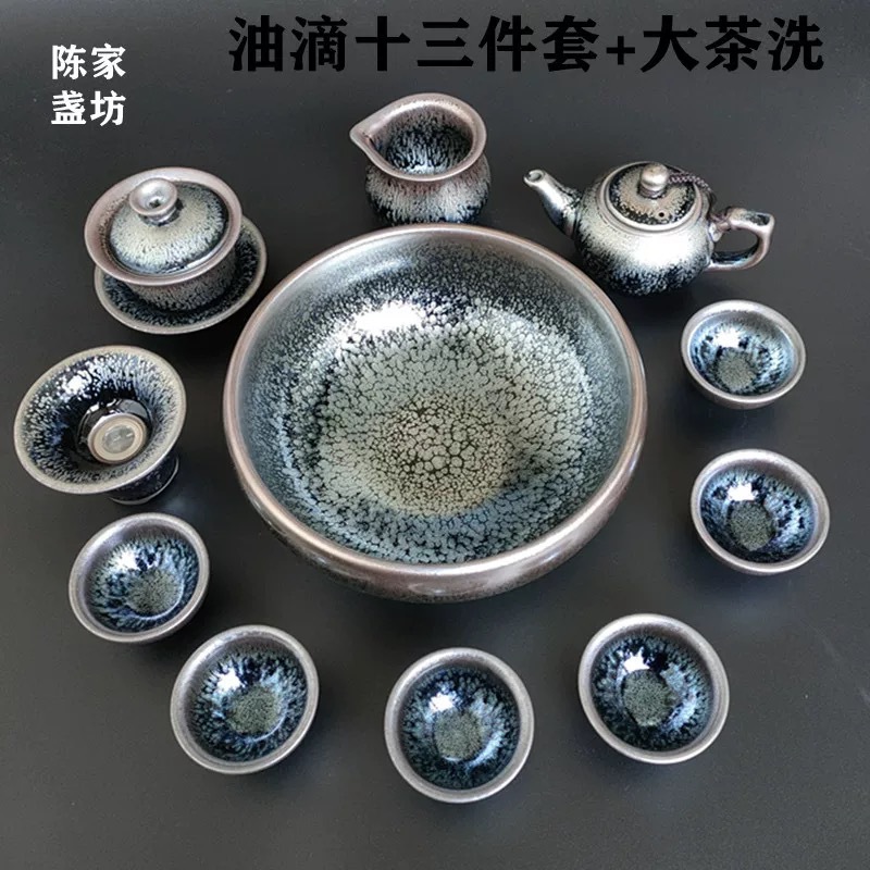 建陽建杯杯カンフー茶器セット家庭用ティーポット油滴兎百花蓋碗公道杯大茶洗